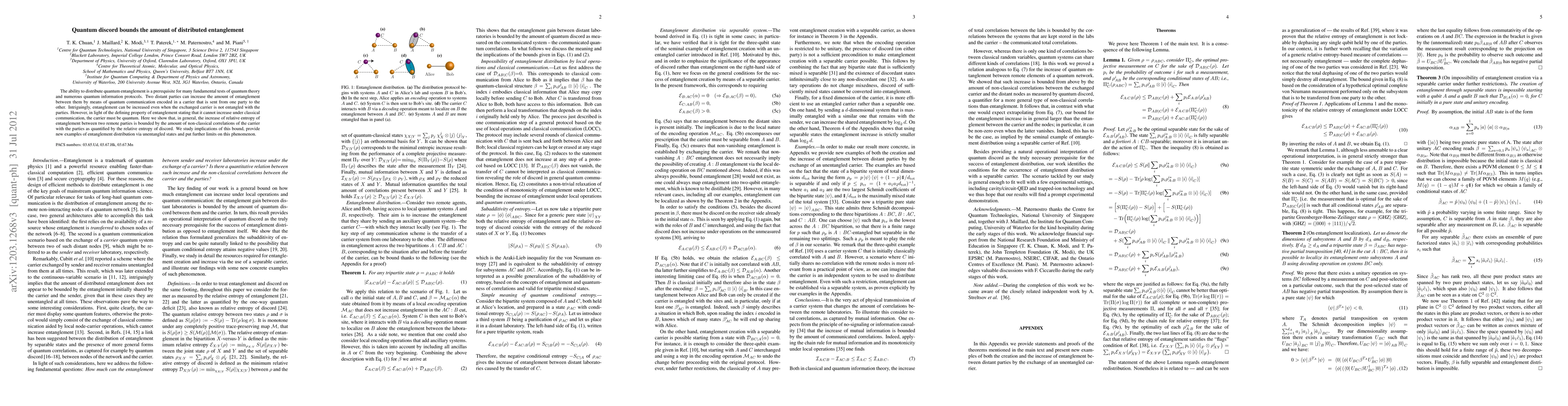 The ability to distribute quantum entanglement is a prerequisite for many fundamental tests of quantum theory and numerous quantum information protocols. Two distant parties can increase the amount of entanglement between them by means of quantum communication encoded in a carrier that is sent from one party to the other. Intriguingly, entanglement can be increased even when the exchanged carrier is not entangled with the parties. However, in light of the defining property of entanglement stating that it cannot increase under classical communication, the carrier must be quantum. Here we show that, in general, the increase of relative entropy of entanglement between two remote parties is bounded by the amount of non-classical correlations of the carrier with the parties as quantified by the relative entropy of discord. We study implications of this bound, provide new examples of entanglement distribution via unentangled states and put further limits on this phenomenon.