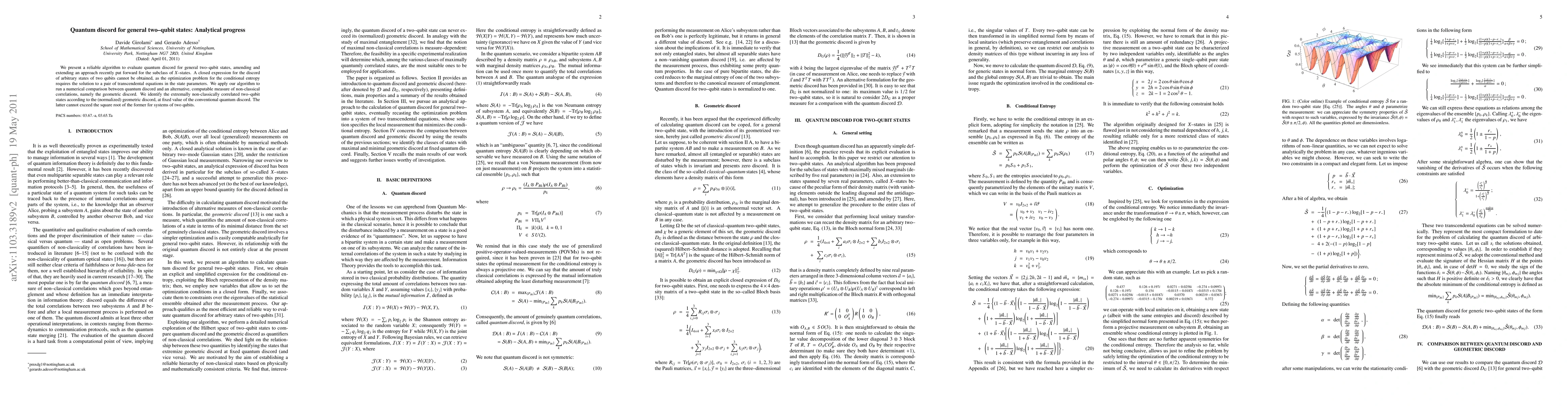 This paper introduces an algorithm for evaluating quantum discord in general two-qubit states, extending previous methods for X-states. It compares quantum discord with geometric discord, identifying the most non-classically correlated states based on geometric discord while maintaining a bound on quantum discord.