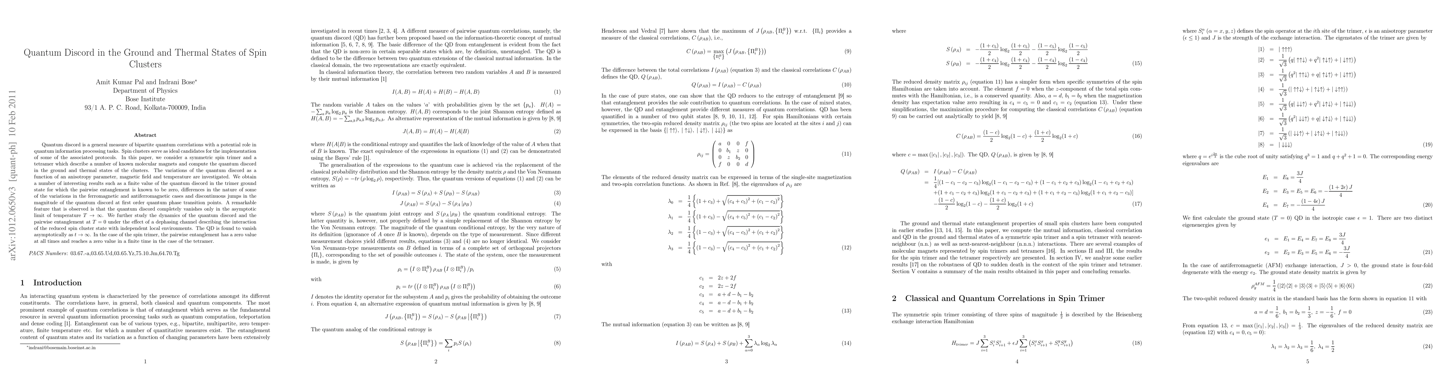 This paper investigates quantum discord in symmetric spin trimers and tetramers, examining its behavior in ground and thermal states. It finds non-zero quantum discord in the trimer's ground state despite zero pairwise entanglement, and observes distinct variations in ferromagnetic and antiferromagnetic cases, with quantum discord vanishing only at infinite temperature.