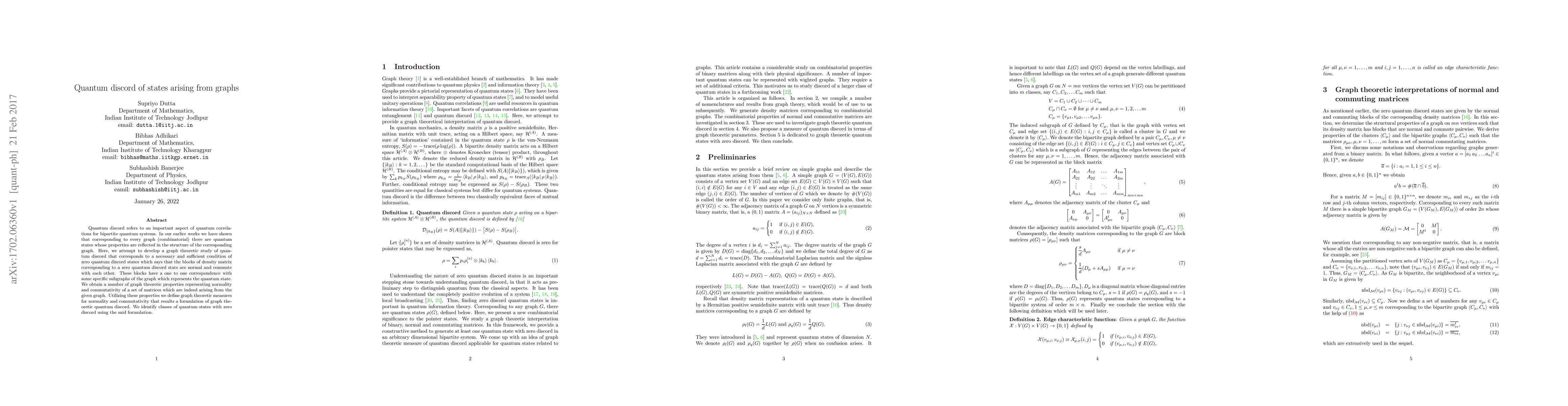 This paper explores the relationship between quantum discord and graph theory, demonstrating that zero quantum discord states correspond to blocks of density matrices that are normal and commute, which relate to specific subgraphs of the graph representing the quantum state. The study defines graph theoretic measures for normality and commutativity to formulate graph theoretic quantum discord and identifies classes of quantum states with zero discord.