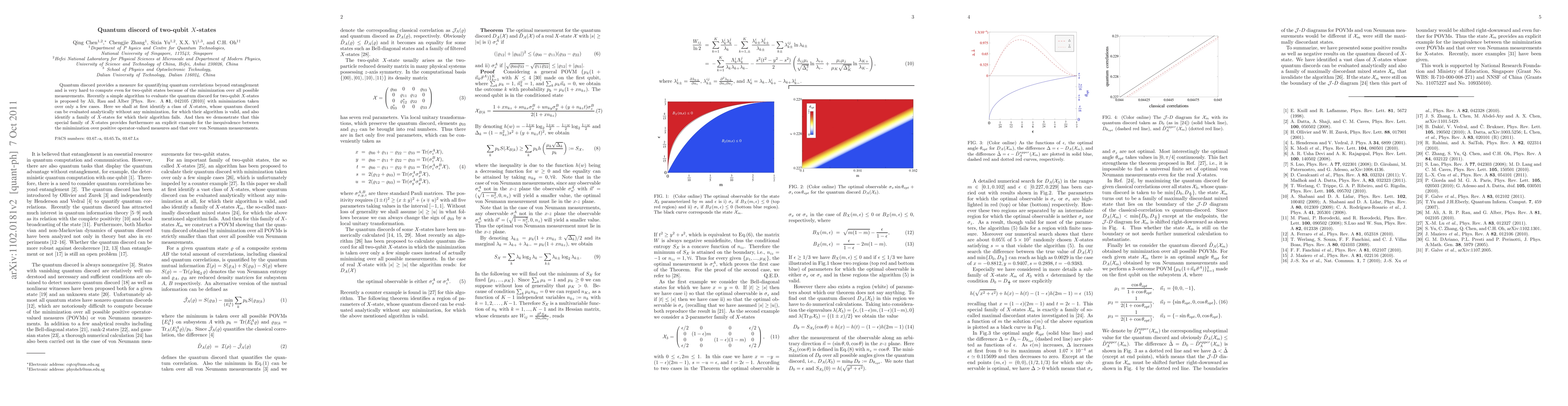 This paper identifies a class of two-qubit X-states where quantum discord can be analytically computed without minimization, validating a proposed algorithm. It also highlights a family of X-states where the algorithm fails, demonstrating the inequivalence between minimizing over positive operator-valued measures and von Neumann measurements.