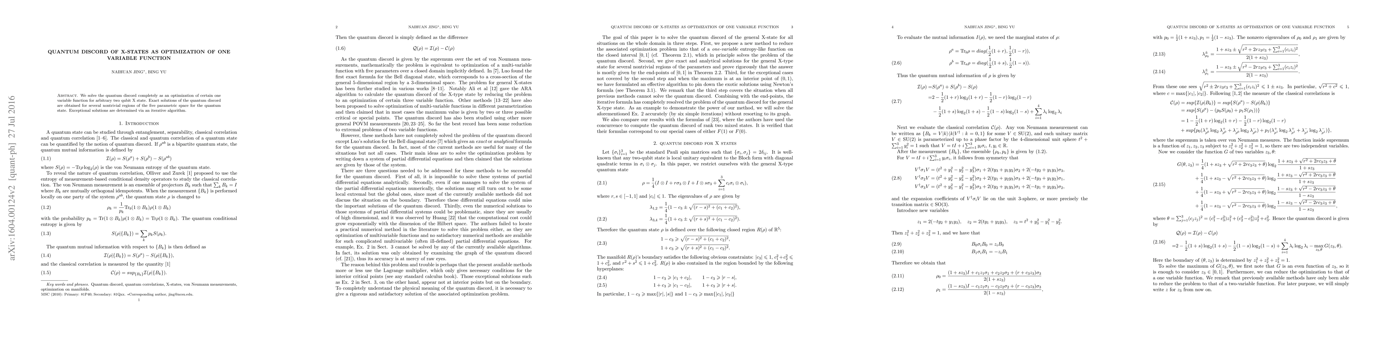 We solve the quantum discord completely as an optimization of certain one variable function for arbitrary two qubit X state. Exact solutions of the quantum discord are obtained for several nontrivial regions of the five parametric space for the quantum state. Exceptional solutions are determined via an iterative algorithm.