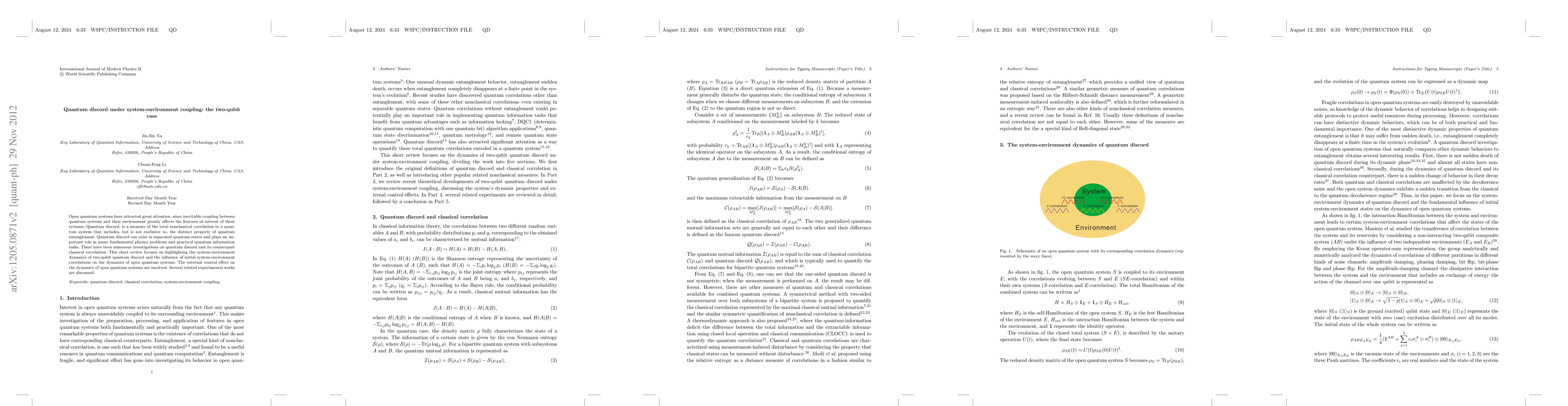 This paper reviews the dynamics of quantum discord in two-qubit open quantum systems under system-environment coupling, emphasizing the influence of initial correlations and external control. It discusses the implications for fundamental physics and practical quantum information tasks.