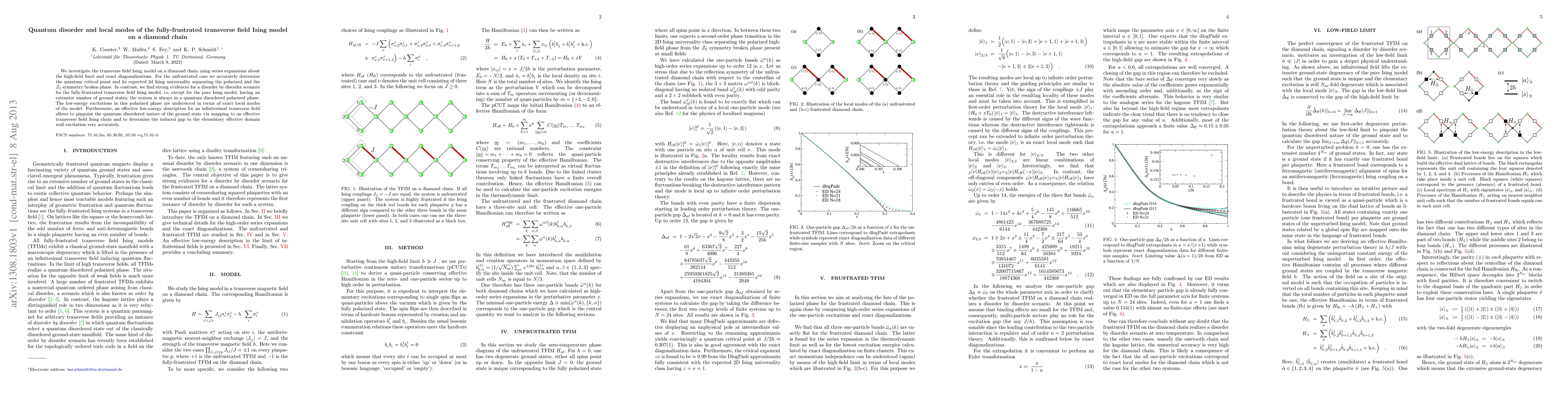 This paper investigates the quantum disorder in the fully-frustrated transverse field Ising model on a diamond chain, finding evidence for a disorder by disorder scenario. It accurately determines the quantum critical point for the unfrustrated case and identifies local modes in the quantum disordered polarized phase.