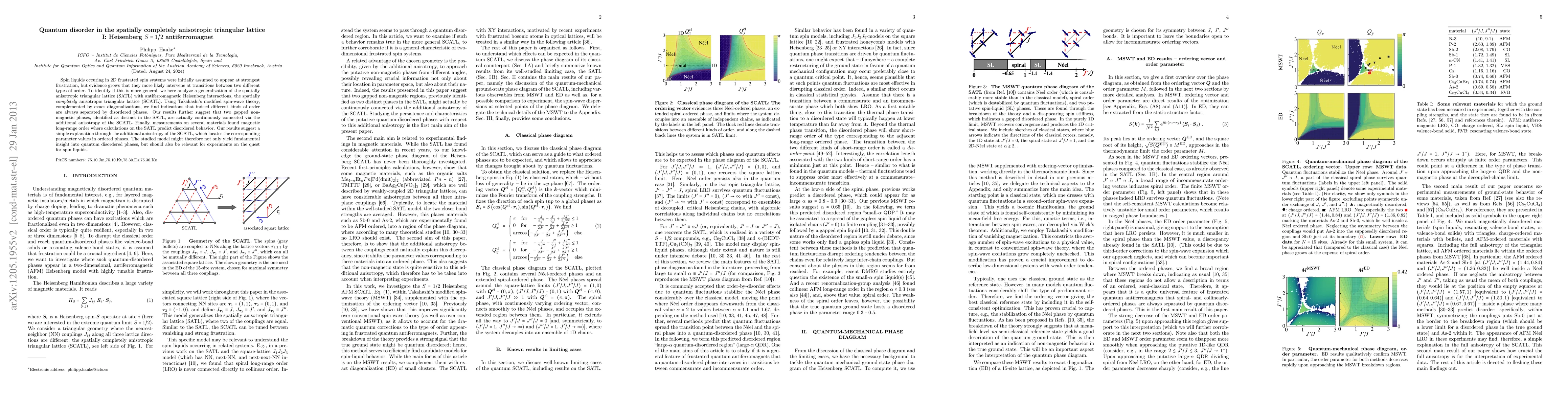 This paper investigates the quantum disorder in a spatially completely anisotropic triangular lattice with Heisenberg $S=1/2$ antiferromagnetic interactions, finding that different types of order are separated by disordered phases. The study suggests that the additional anisotropy connects two gapped non-magnetic phases, providing a potential explanation for observed magnetic long-range order in materials.