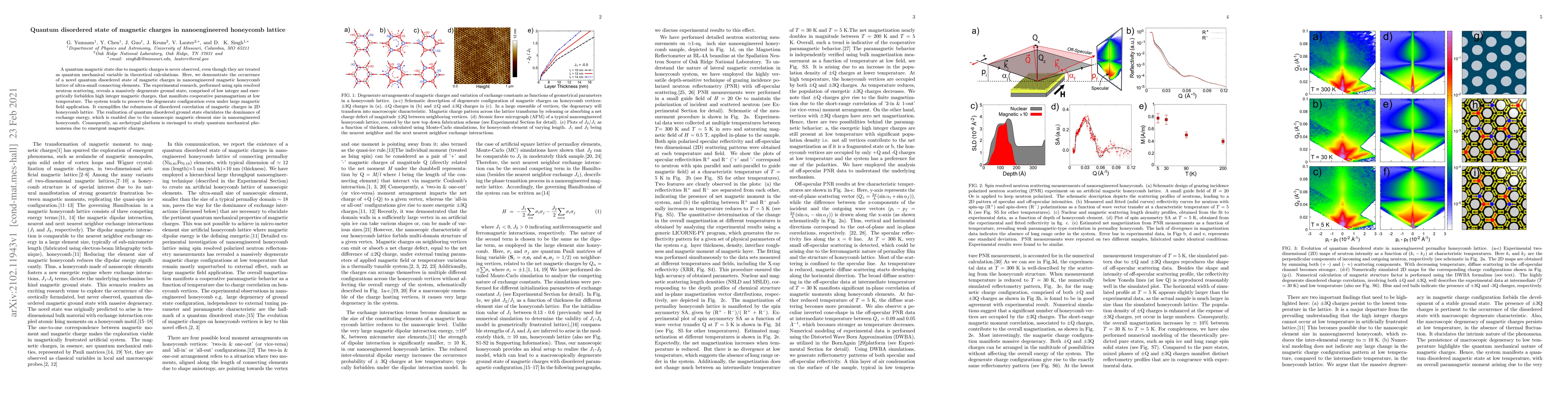 This research demonstrates the emergence of a novel quantum disordered state of magnetic charges in a nanoengineered honeycomb lattice, revealing a massively degenerate ground state that exhibits cooperative paramagnetism and robustness against large magnetic fields. The findings highlight the dominance of exchange energy due to the small size of magnetic elements, providing a new platform for studying quantum phenomena.