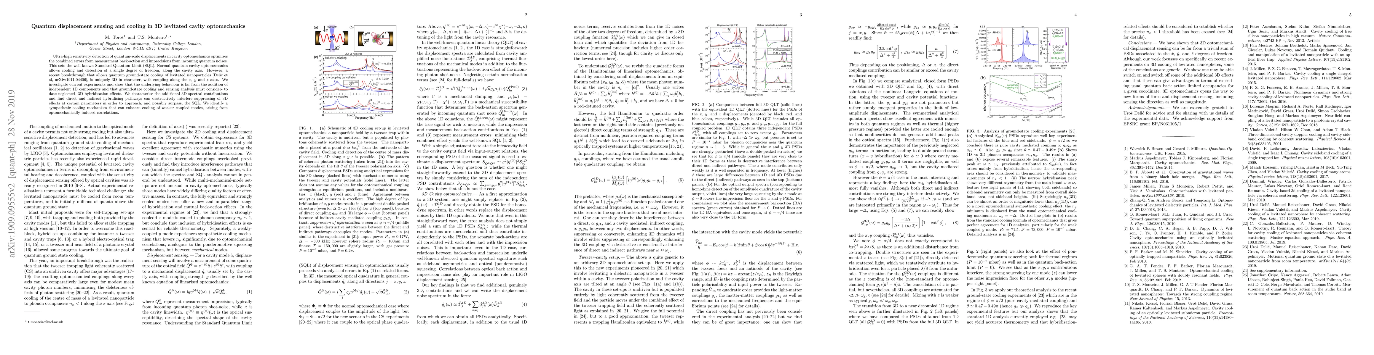 Ultra-high sensitivity detection of quantum-scale displacements in cavity optomechanics optimises the combined errors from measurement back-action and imprecisions from incoming quantum noises. This sets the well-known Standard Quantum Limit (SQL). Normal quantum cavity optomechanics allows cooling and detection of a single degree of freedom, along the cavity axis. However, a recent breakthrough that allows quantum ground-state cooling of levitated nanoparticles [Delic et al, arxiv:1911.04406], is uniquely 3D in character, with coupling along the $x$, $y$ and $z$ axes. We investigate current experiments and show that the underlying behaviour is far from the addition of independent 1D components and that ground-state cooling and sensing analysis must consider- to date neglected- 3D hybridisation effects. We characterise the additional 3D spectral contributions and find direct and indirect hybridising pathways can destructively interfere suppressing of 3D effects at certain parameters in order to approach, and possibly surpass, the SQL. We identify a sympathetic cooling mechanism that can enhance cooling of weaker coupled modes, arising from optomechanically induced correlations.