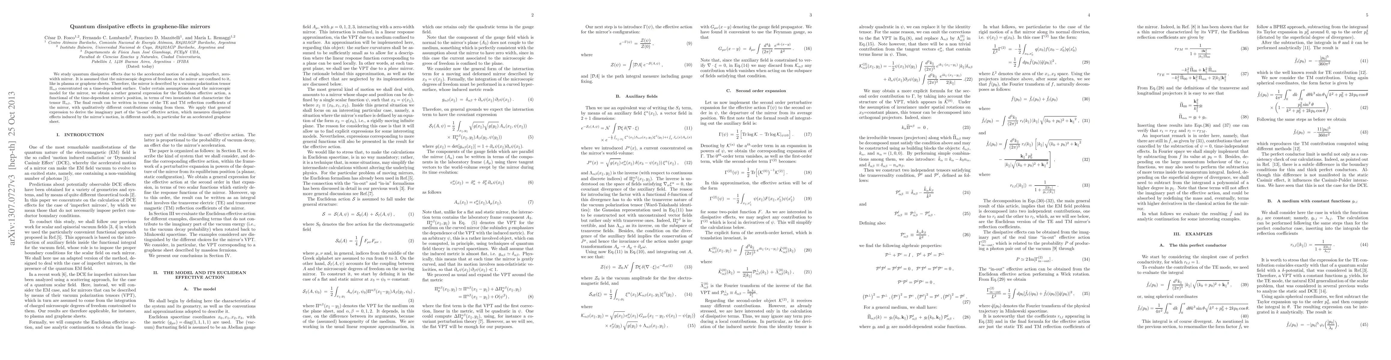 This paper investigates quantum dissipative effects in graphene-like mirrors due to accelerated motion, deriving a general expression for the Euclidean effective action in terms of reflection coefficients. It applies this to find the imaginary part of the `in-out' effective action, quantifying the dissipative effects in various models, especially for an accelerated graphene sheet.
