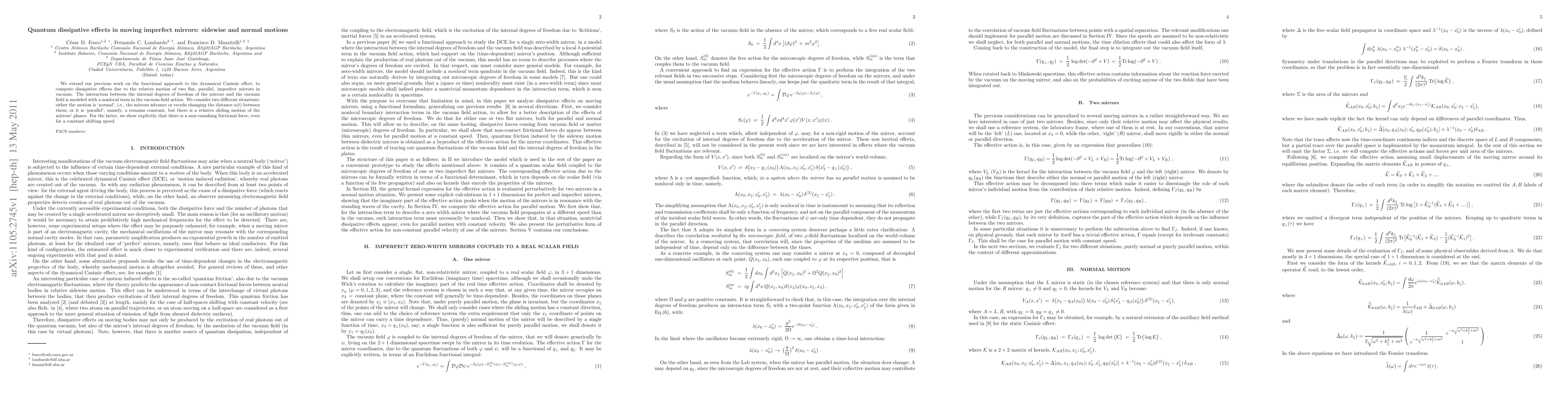 We extend our previous work on the functional approach to the dynamical Casimir effect, to compute dissipative effects due to the relative motion of two flat, parallel, imperfect mirrors in vacuum. The interaction between the internal degrees of freedom of the mirrors and the vacuum field is modeled with a nonlocal term in the vacuum field action. We consider two different situations: either the motion is `normal', i.e., the mirrors advance or recede changing the distance $a(t)$ between them; or it is `parallel', namely, $a$ remains constant, but there is a relative sliding motion of the mirrors' planes. For the latter, we show explicitly that there is a non-vanishing frictional force, even for a constant shifting speed.