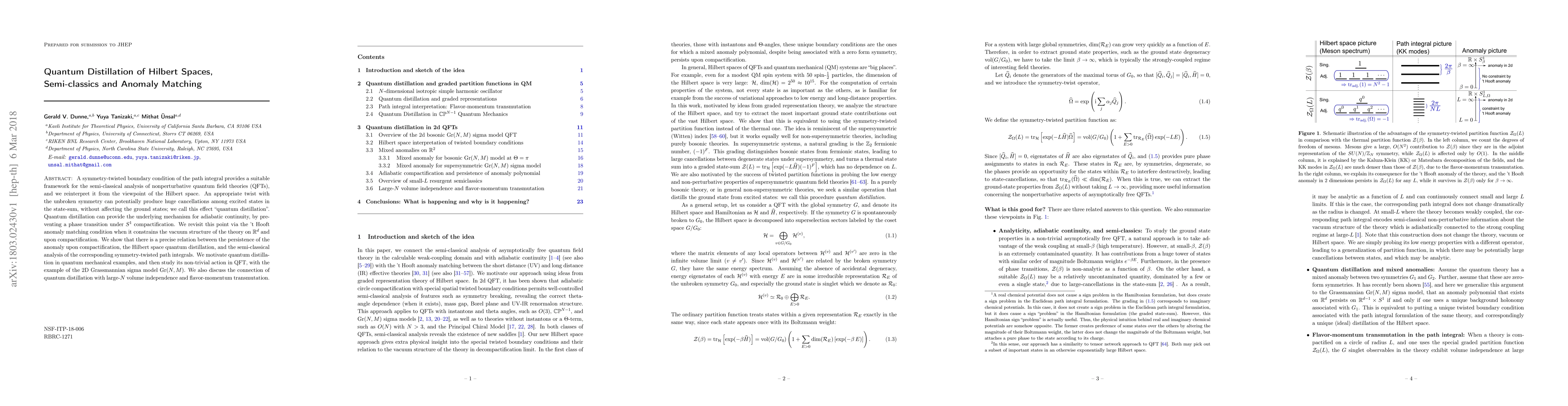 A symmetry-twisted boundary condition of the path integral provides a suitable framework for the semi-classical analysis of nonperturbative quantum field theories (QFTs), and we reinterpret it from the viewpoint of the Hilbert space. An appropriate twist with the unbroken symmetry can potentially produce huge cancellations among excited states in the state-sum, without affecting the ground states; we call this effect "quantum distillation". Quantum distillation can provide the underlying mechanism for adiabatic continuity, by preventing a phase transition under $S^1$ compactification. We revisit this point via the 't Hooft anomaly matching condition when it constrains the vacuum structure of the theory on $\mathbb{R}^d$ and upon compactification. We show that there is a precise relation between the persistence of the anomaly upon compactification, the Hilbert space quantum distillation, and the semi-classical analysis of the corresponding symmetry-twisted path integrals. We motivate quantum distillation in quantum mechanical examples, and then study its non-trivial action in QFT, with the example of the 2D Grassmannian sigma model $\mathrm{Gr}(N,M)$. We also discuss the connection of quantum distillation with large-$N$ volume independence and flavor-momentum transmutation.