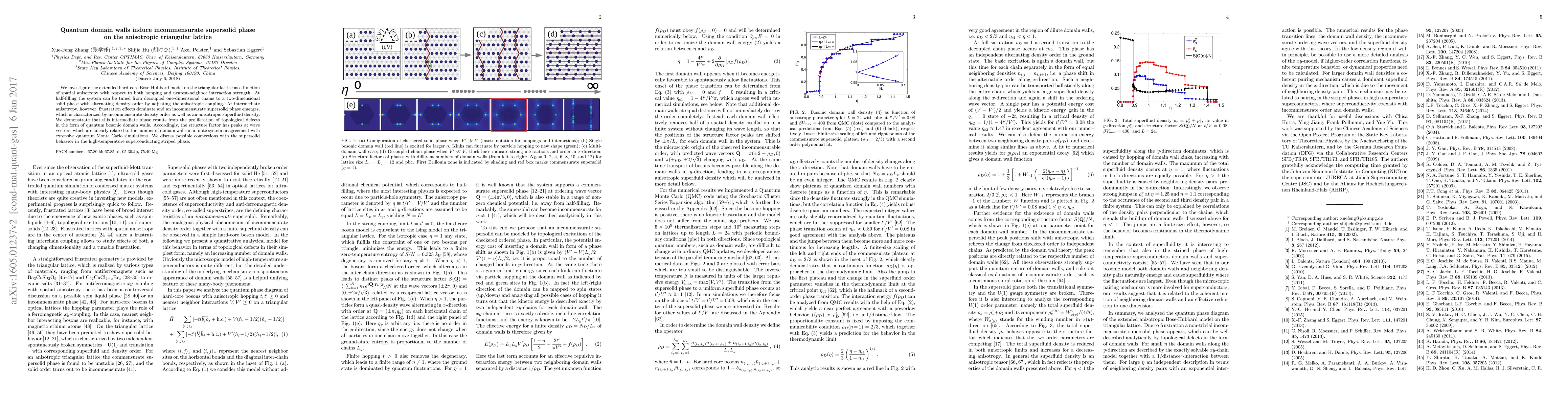 This study explores the extended hard-core Bose-Hubbard model on an anisotropic triangular lattice, revealing an incommensurate supersolid phase due to quantum domain walls at intermediate anisotropy. The system exhibits incommensurate density order and anisotropic superfluid density, with the structure factor's peaks correlating to the number of domain walls.