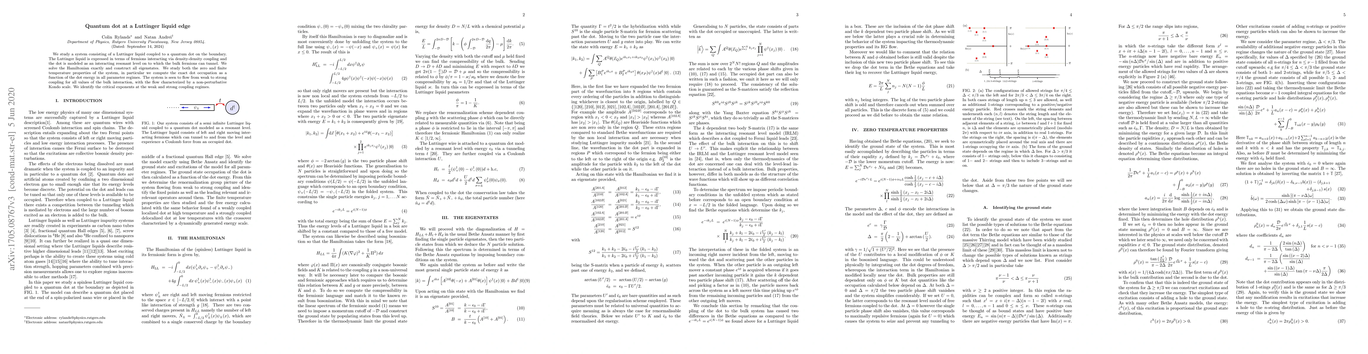 The paper presents a detailed exact solution for a Luttinger liquid-quantum dot system using the Bethe Ansatz, providing a comprehensive understanding of the model's phase transitions and critical behavior.
