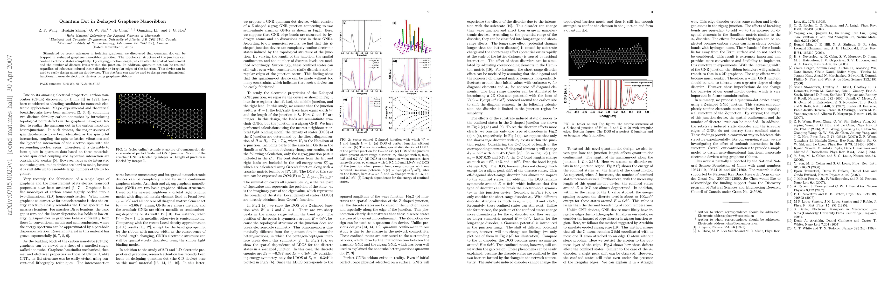 The paper presents a theoretical model for a quantum dot device using a Z-shaped GNR junction, demonstrating its ability to confine electronic states and remain robust against disorders.