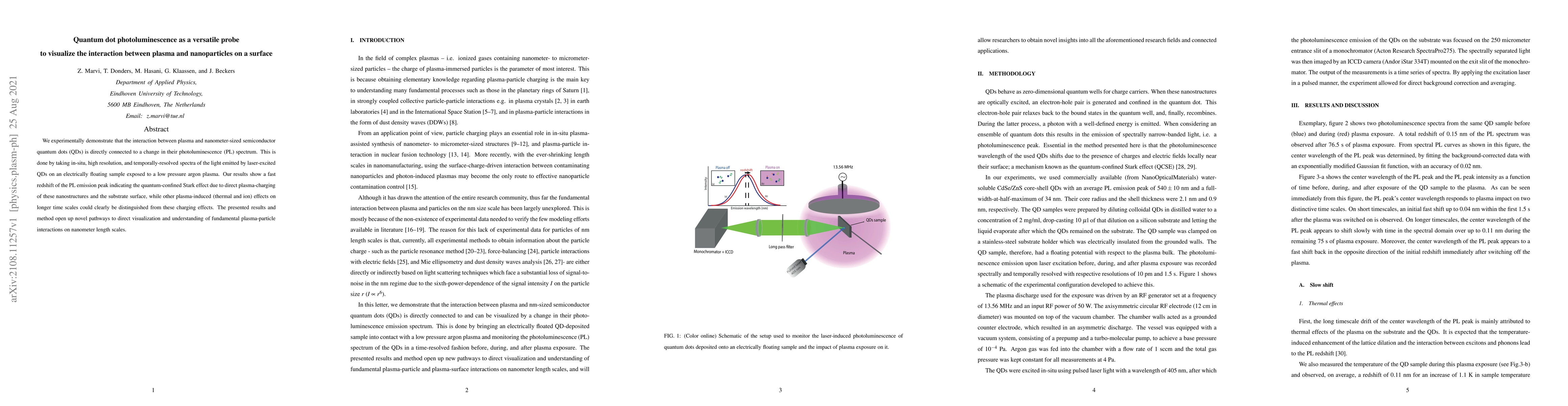 Researchers demonstrated that quantum dots' photoluminescence changes when exposed to plasma, revealing a direct connection between the two. This allows for the visualization of interactions between plasma and nanoparticles on a surface at the nanoscale.