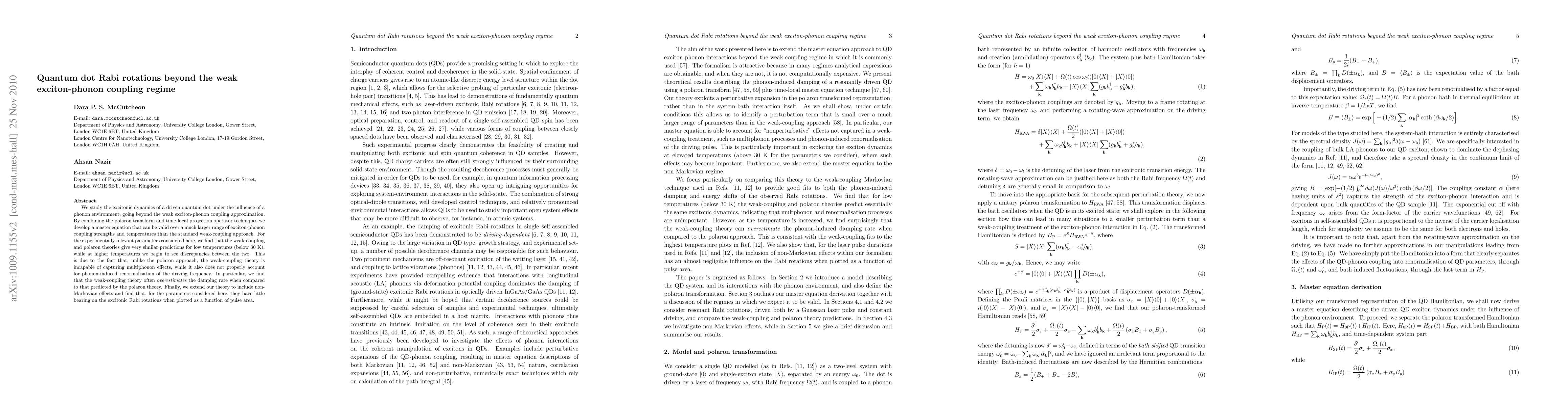 We study the excitonic dynamics of a driven quantum dot under the influence of a phonon environment, going beyond the weak exciton-phonon coupling approximation. By combining the polaron transform and time-local projection operator techniques we develop a master equation that can be valid over a much larger range of exciton-phonon coupling strengths and temperatures than the standard weak-coupling approach. For the experimentally relevant parameters considered here, we find that the weak-coupling and polaron theories give very similar predictions for low temperatures (below 30 K), while at higher temperatures we begin to see discrepancies between the two. This is due to the fact that, unlike the polaron approach, the weak-coupling theory is incapable of capturing multiphonon effects, while it also does not properly account for phonon-induced renormalisation of the driving frequency. In particular, we find that the weak-coupling theory often overestimates the damping rate when compared to that predicted by the polaron theory. Finally, we extend our theory to include non-Markovian effects and find that, for the parameters considered here, they have little bearing on the excitonic Rabi rotations when plotted as a function of pulse area.