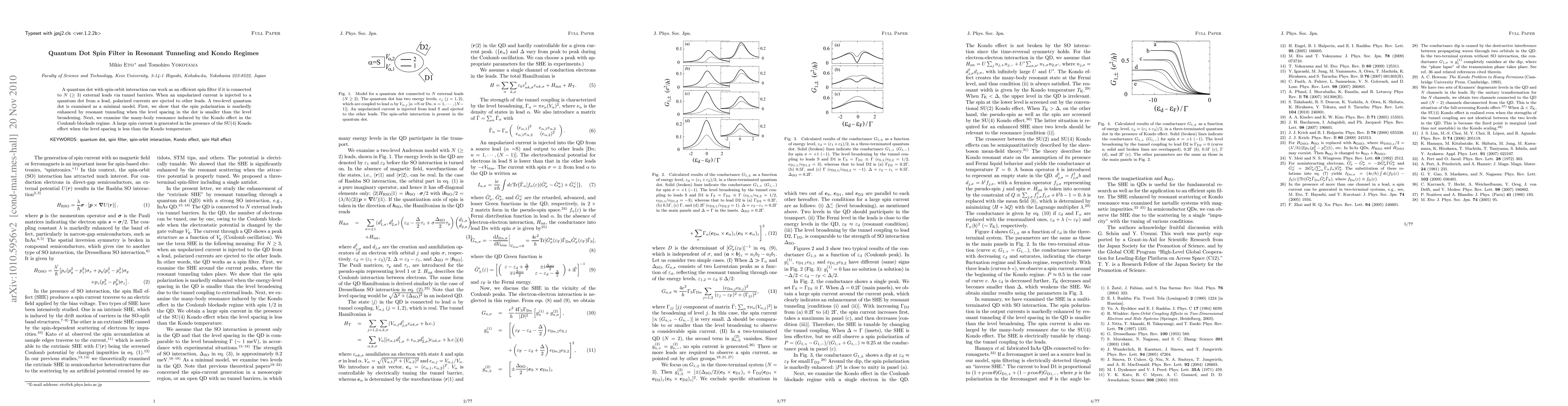 This paper investigates a quantum dot with spin-orbit interaction functioning as a spin filter connected to multiple leads via tunnel barriers. It demonstrates enhanced spin polarization through resonant tunneling and explores the Kondo effect's influence on spin currents in the Coulomb blockade regime.