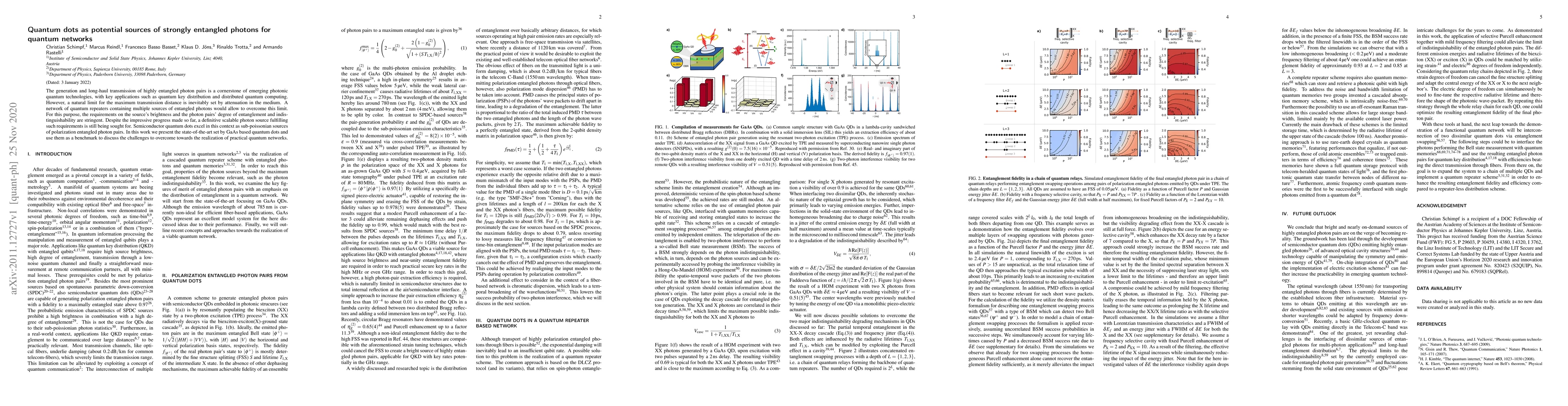 The paper presents an in-depth analysis of GaAs-based quantum dots as sources of entangled photon pairs, proposing solutions to overcome current limitations in indistinguishability and entanglement fidelity for practical quantum networks.