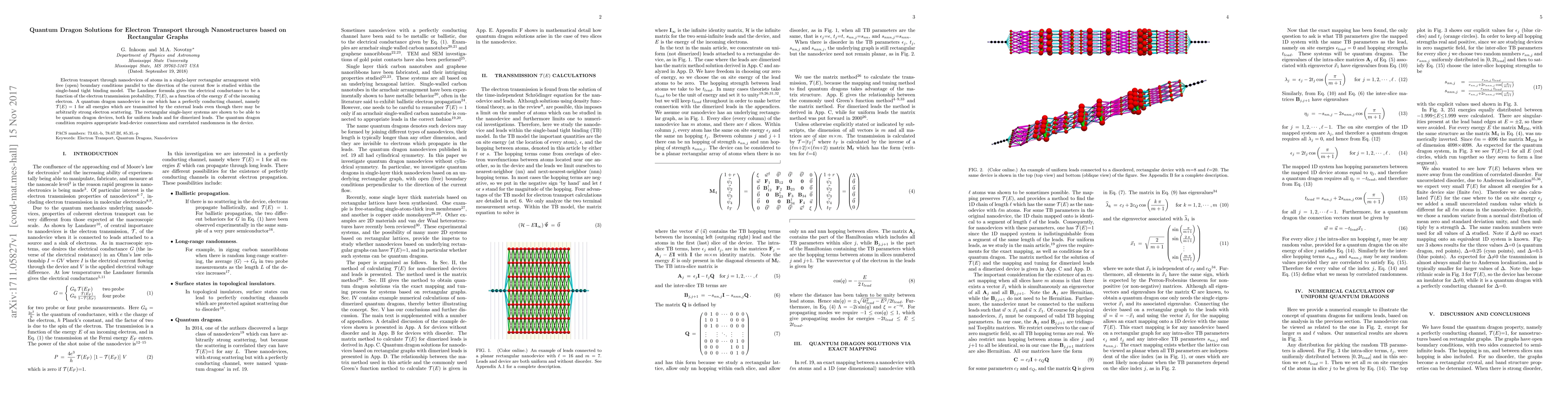 Electron transport through nanodevices of atoms in a single-layer rectangular arrangement with free (open) boundary conditions parallel to the direction of the current flow is studied within the single-band tight binding model. The Landauer formula gives the electrical conductance to be a function of the electron transmission probability, ${\cal T}(E)$, as a function of the energy $E$ of the incoming electron. A quantum dragon nanodevice is one which has a perfectly conducting channel, namely ${\cal T}(E)=1$ for all energies which are transmitted by the external leads even though there may be arbitrarily strong electron scattering. The rectangular single-layer systems are shown to be able to be quantum dragon devices, both for uniform leads and for dimerized leads. The quantum dragon condition requires appropriate lead-device connections and correlated randomness in the device.