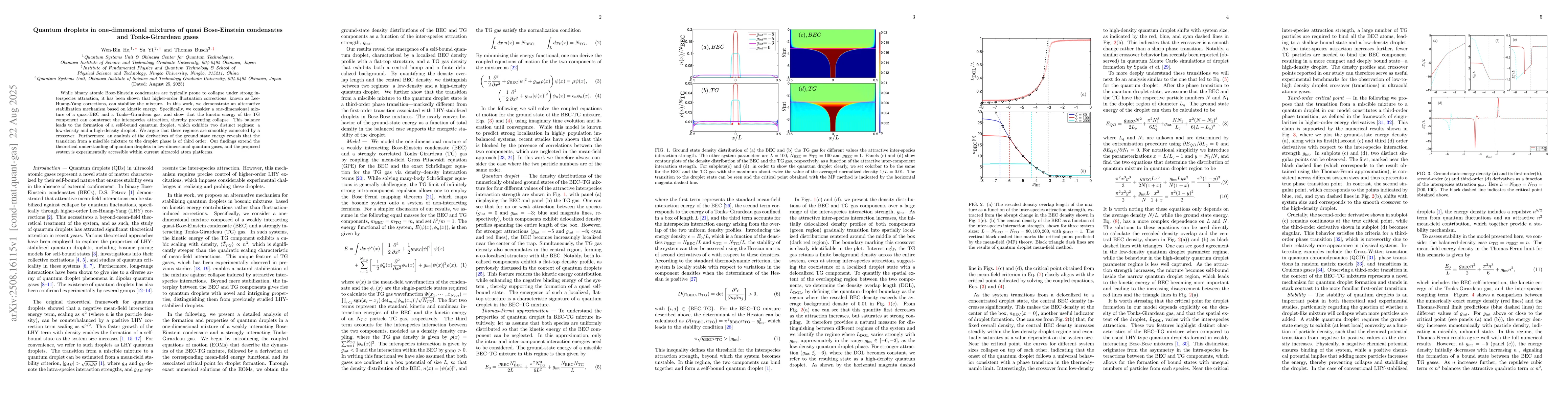 While binary atomic Bose-Einstein condensates are typically prone to collapse under strong interspecies attraction, it has been shown that higher-order fluctuation corrections, known as Lee-Huang-Yang corrections, can stabilize the mixture. In this work, we demonstrate an alternative stabilization mechanism based on kinetic energy. Specifically, we consider a one-dimensional mixture of a quasi-BEC and a Tonks-Girardeau gas, and show that the kinetic energy of the TG component can counteract the interspecies attraction, thereby preventing collapse. This balance leads to the formation of a self-bound quantum droplet, which exhibits two distinct regimes: a low-density and a high-density droplet. We argue that these regimes are smoothly connected by a crossover. Furthermore, an analysis of the derivatives of the ground state energy reveals that the transition from a miscible mixture to the droplet phase is of third order. Our findings extend the theoretical understanding of quantum droplets in low-dimensional quantum gases, and the proposed system is experimentally accessible within current ultracold atom platforms.