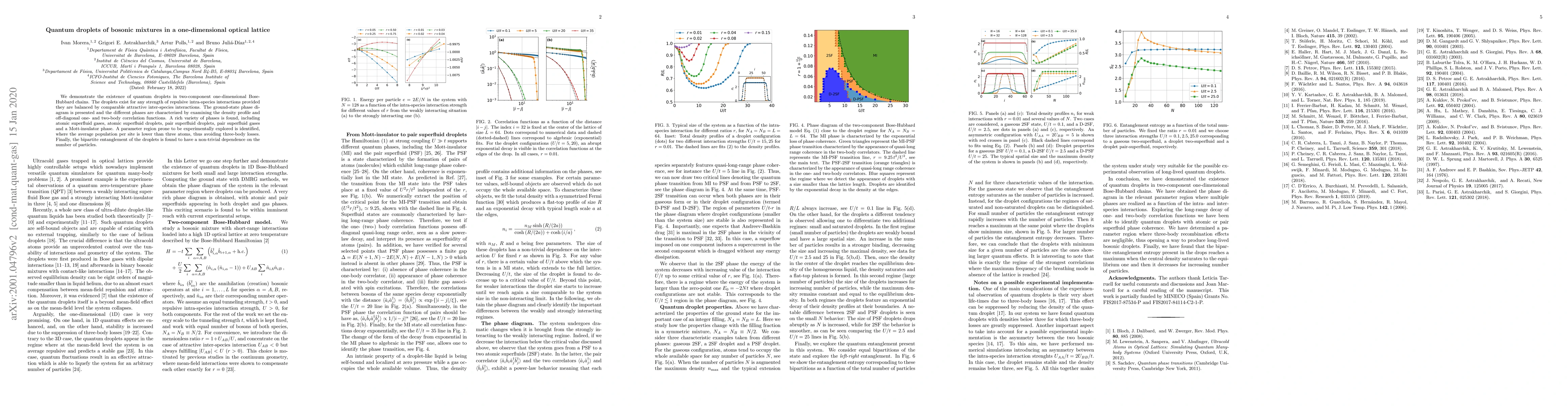 We demonstrate the existence of quantum droplets in two-component one-dimensional Bose-Hubbard chains. The droplets exist for any strength of repulsive intra-species interactions provided they are balanced by comparable attractive inter-species interactions. The ground-state phase diagram is presented and the different phases are characterized by examining the density profile and off-diagonal one- and two-body correlation functions. A rich variety of phases is found, including atomic superfluid gases, atomic superfluid droplets, pair superfluid droplets, pair superfluid gases and a Mott-insulator phase. A parameter region prone to be experimentally explored is identified, where the average population per site is lower than three atoms, thus avoiding three-body losses. Finally, the bipartite entanglement of the droplets is found to have a non-trivial dependence on the number of particles.