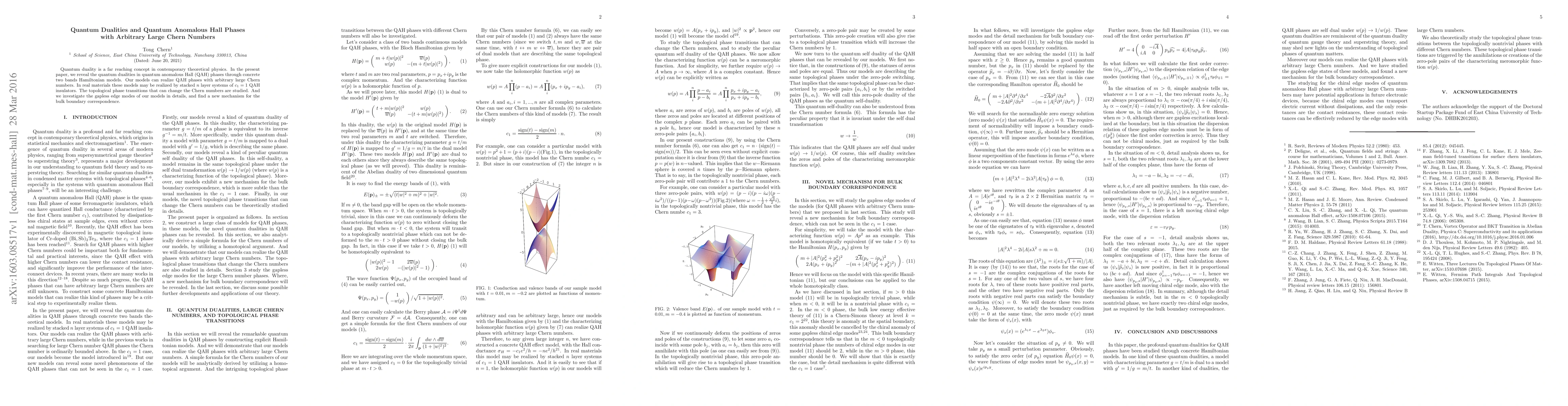 This paper explores quantum dualities in quantum anomalous Hall phases using two-band Hamiltonian models, demonstrating the realization of phases with arbitrarily large Chern numbers. The study also investigates topological phase transitions and the gapless edge modes, revealing a new mechanism for the bulk-boundary correspondence.