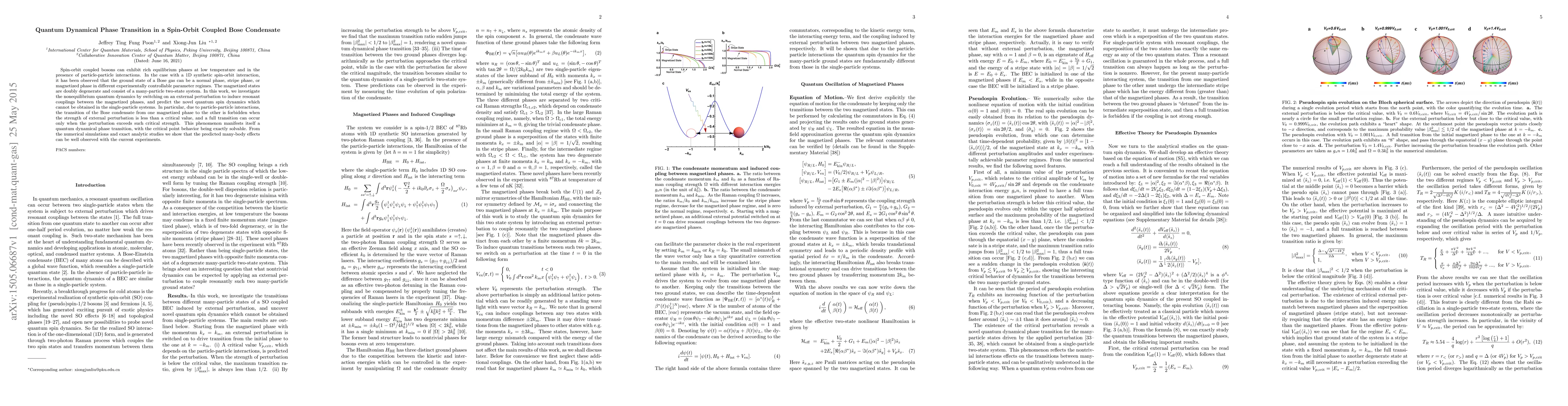 This paper investigates the quantum dynamical phase transition in a spin-orbit coupled Bose condensate, revealing that the transition between magnetized phases is forbidden below a critical perturbation strength due to particle-particle interactions, leading to a novel quantum spin dynamics observable in current experiments. The critical point behavior is shown to be exactly solvable through analytical and numerical methods.