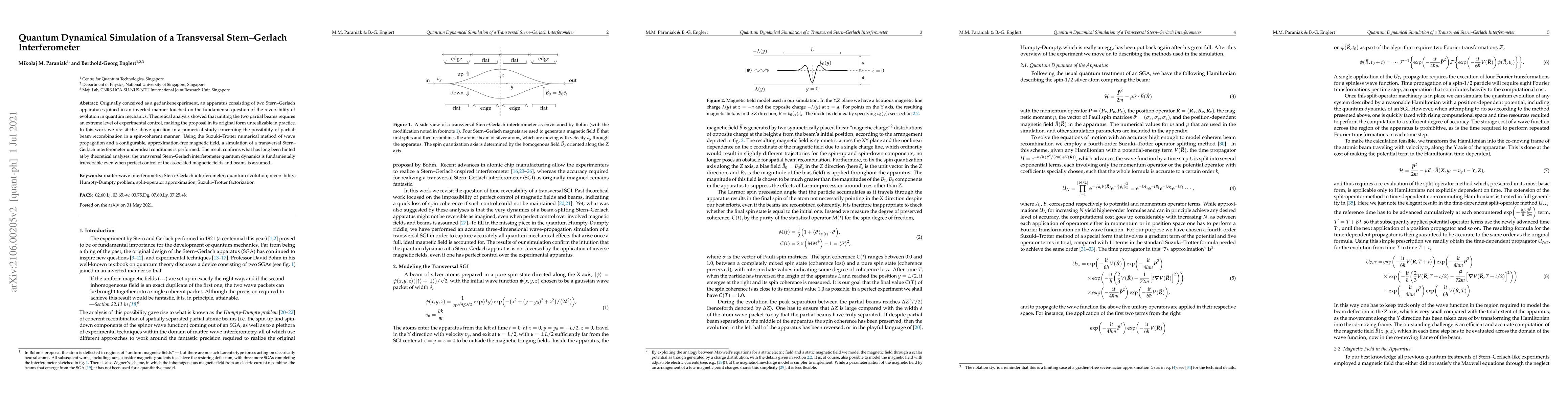 This paper simulates a quantum dynamical system using a transversal Stern-Gerlach interferometer, confirming that despite ideal conditions, the recombination of partial beams remains fundamentally irreversible due to quantum mechanical constraints. The study employs the Suzuki-Trotter method for wave propagation and a precise magnetic field model.