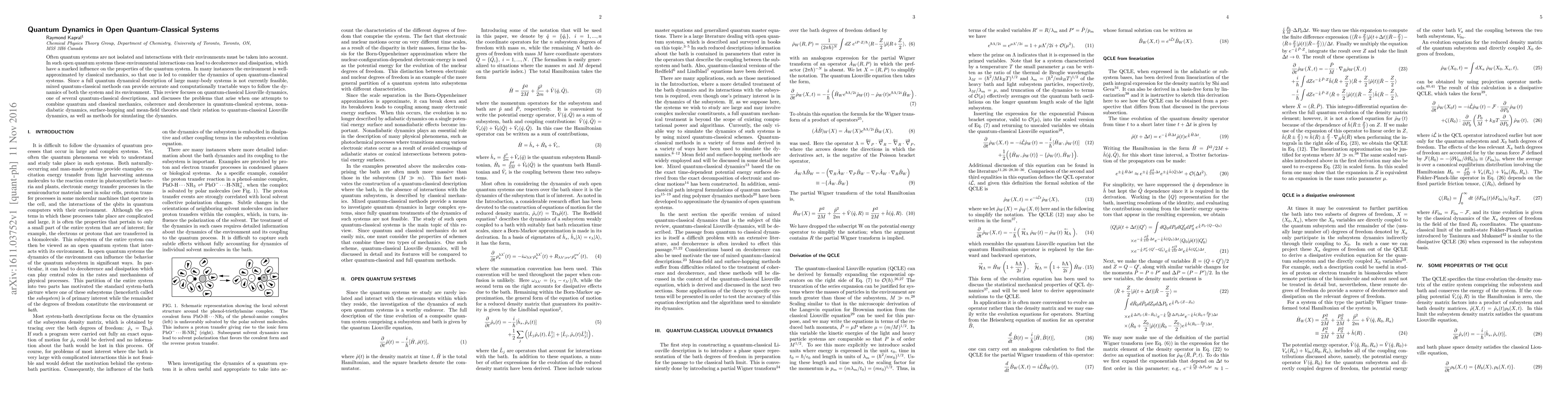 This paper reviews quantum dynamics in open quantum-classical systems, emphasizing mixed quantum-classical methods for simulating decoherence and dissipation processes in large many-body systems, and explores topics such as coherence, nonadiabatic dynamics, and surface-hopping theories.