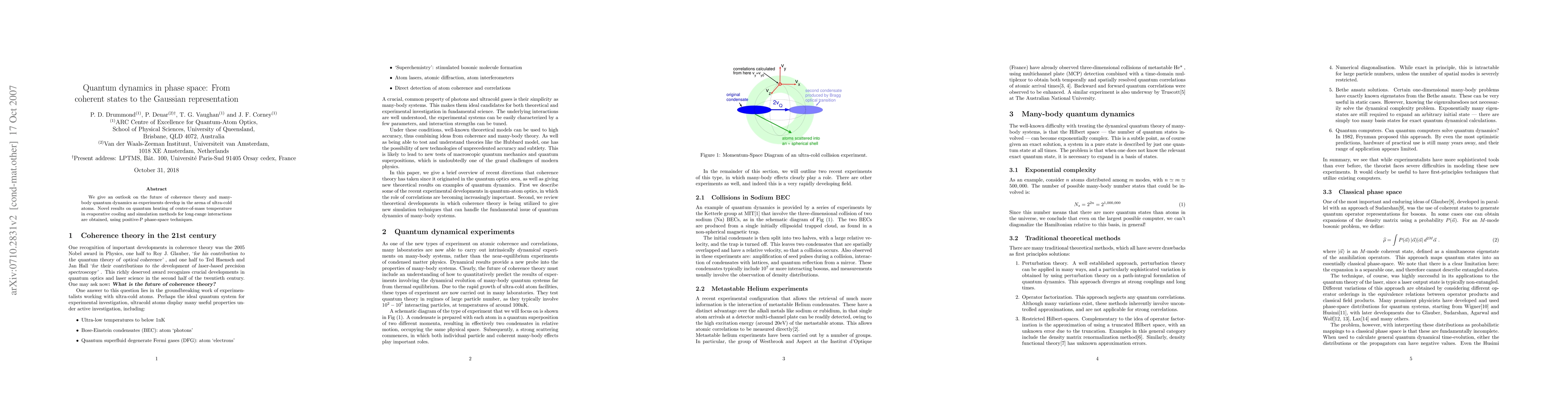 We give an outlook on the future of coherence theory and many-body quantum dynamics as experiments develop in the arena of ultra-cold atoms. Novel results on quantum heating of center-of-mass temperature in evaporative cooling and simulation methods for long-range interactions are obtained, using positive-P phase-space techniques.