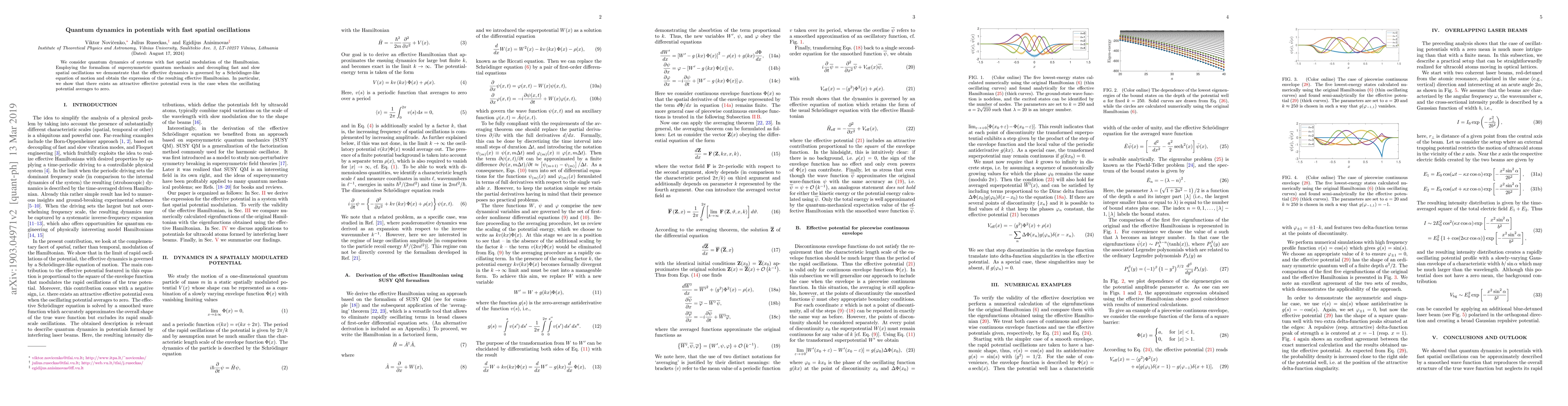 We consider quantum dynamics of systems with fast spatial modulation of the Hamiltonian. Employing the formalism of supersymmetric quantum mechanics and decoupling fast and slow spatial oscillations we demonstrate that the effective dynamics is governed by a Schr\"{o}dinger-like equation of motion and obtain the expression of the resulting effective Hamiltonian. In particular, we show that there exists an attractive effective potential even in the case when the oscillating potential averages to zero.