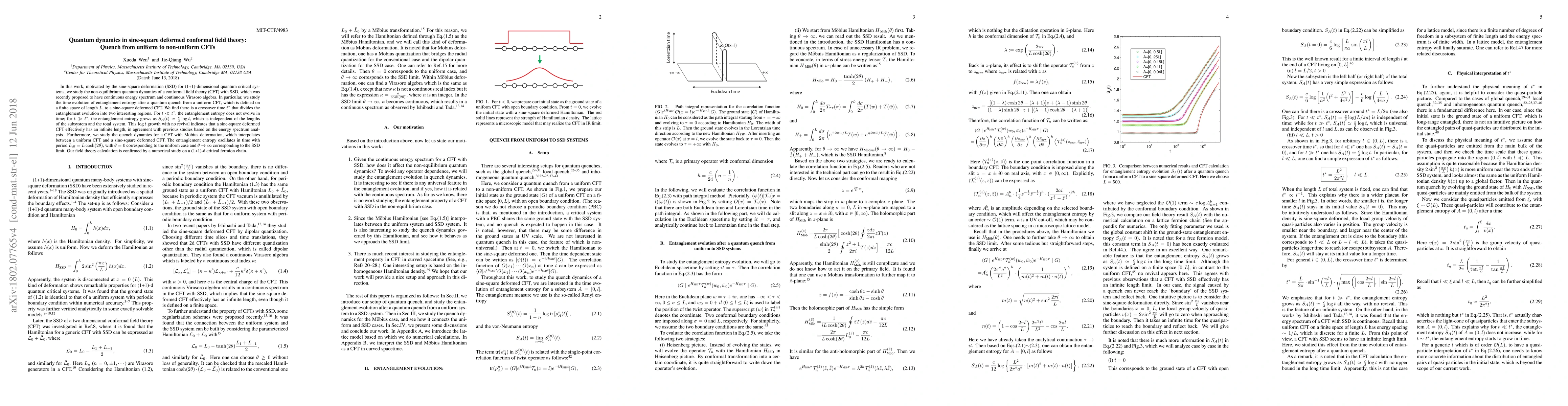 In this work, motivated by the sine-square deformation (SSD) for (1+1)-dimensional quantum critical systems, we study the non-equilibrium quantum dynamics of a conformal field theory (CFT) with SSD, which was recently proposed to have continuous energy spectrum and continuous Virasoro algebra. In particular, we study the time evolution of entanglement entropy after a quantum quench from a uniform CFT, which is defined on a finite space of length $L$, to a sine-square deformed CFT. We find there is a crossover time $t^{\ast}$ that divides the entanglement evolution into two interesting regions. For $t\ll t^{\ast}$, the entanglement entropy does not evolve in time; for $t\gg t^{\ast}$, the entanglement entropy grows as $S_A(t)\simeq \frac{c}{3}\log t$, which is independent of the lengths of the subsystem and the total system. This $\log t$ growth with no revival indicates that a sine-square deformed CFT effectively has an infinite length, in agreement with previous studies based on the energy spectrum analysis. Furthermore, we study the quench dynamics for a CFT with M$\ddot{\text{o}}$bius deformation, which interpolates between a uniform CFT and a sine-square deformed CFT. The entanglement entropy oscillates in time with period $L_{\text{eff}}=L\cosh(2\theta)$, with $\theta=0$ corresponding to the uniform case and $\theta\to \infty$ corresponding to the SSD limit. Our field theory calculation is confirmed by a numerical study on a (1+1)-d critical fermion chain.