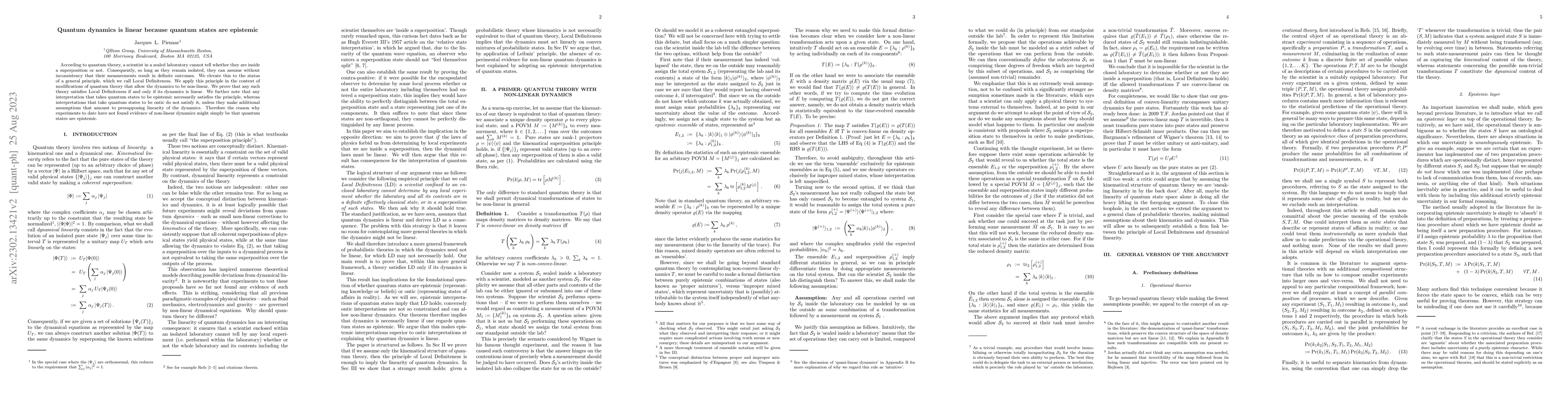 This paper argues that quantum dynamics is inherently linear due to the epistemic nature of quantum states, meaning that scientists cannot determine if they are in a superposition. It establishes Local Definiteness as a principle, proving that any non-linear quantum dynamics theory must violate this principle, thereby supporting the linearity of quantum dynamics.