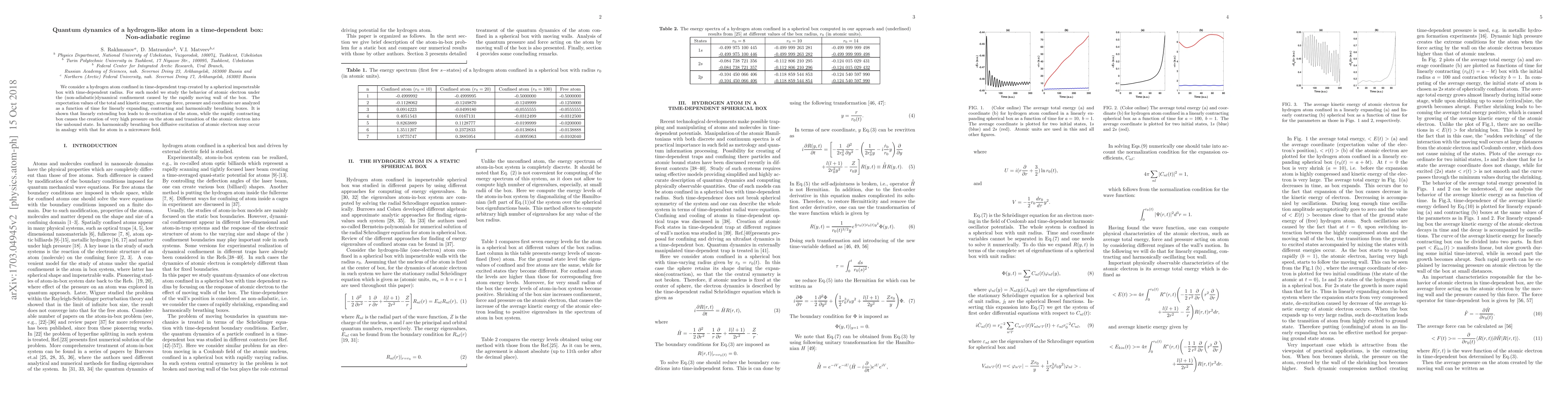 This paper investigates the quantum dynamics of a hydrogen atom in a time-dependent spherical box, analyzing the non-adiabatic effects of rapidly changing box walls. It finds that a linearly expanding box results in atomic de-excitation, while a rapidly contracting box generates high pressure and can unbind the electron, whereas a harmonically breathing box may cause diffusive excitation akin to microwave-induced transitions.