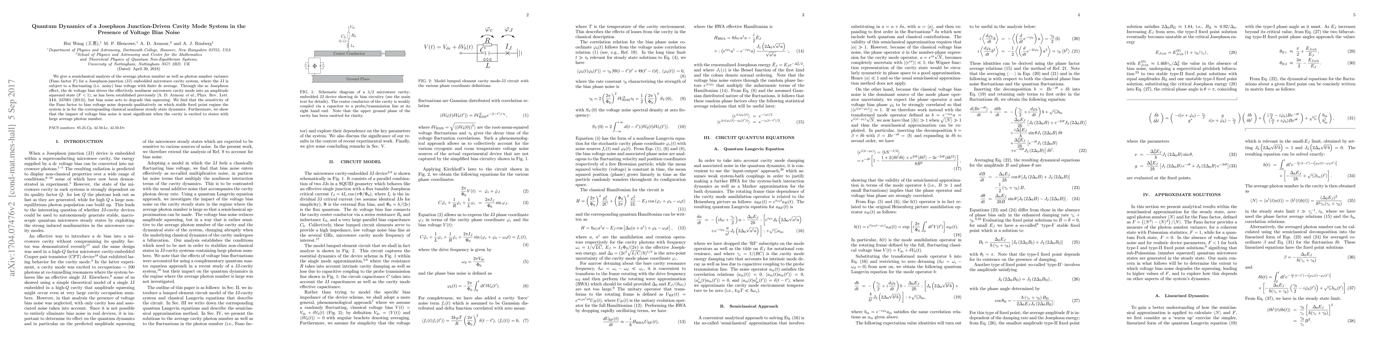 This paper analyzes the quantum dynamics of a Josephson junction-driven cavity system under voltage bias noise, finding that the Fano factor (photon number variance) is squeezed by the dc voltage but degraded by noise, with sensitivity varying based on the system's classical steady state and being most pronounced at high average photon numbers.