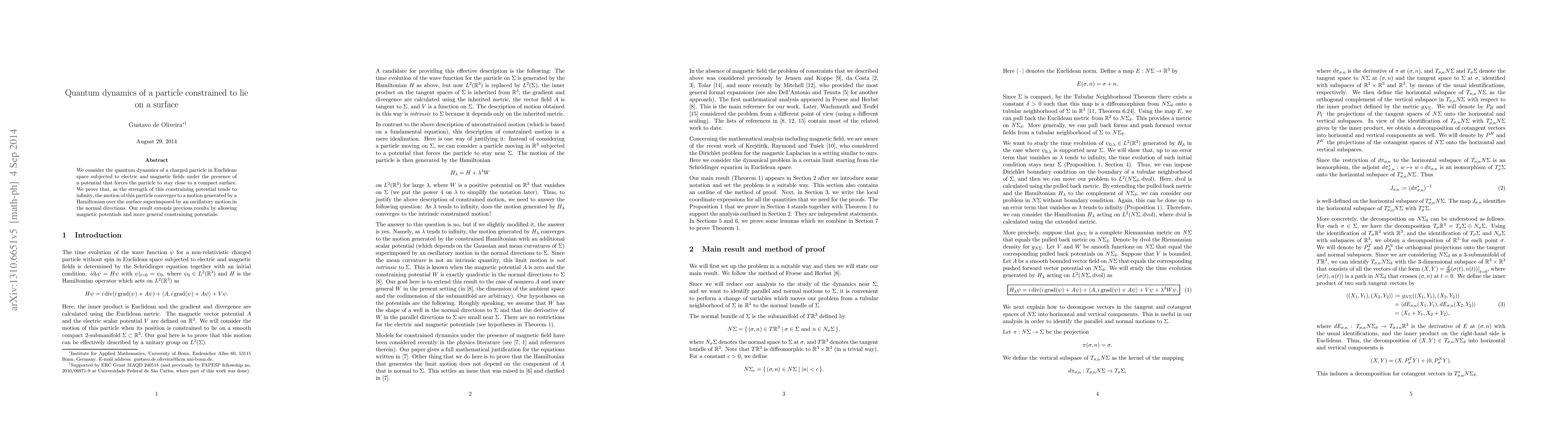A charged particle's quantum motion converges to a Hamiltonian motion over a surface with an oscillatory component in the normal directions as the constraining potential increases.