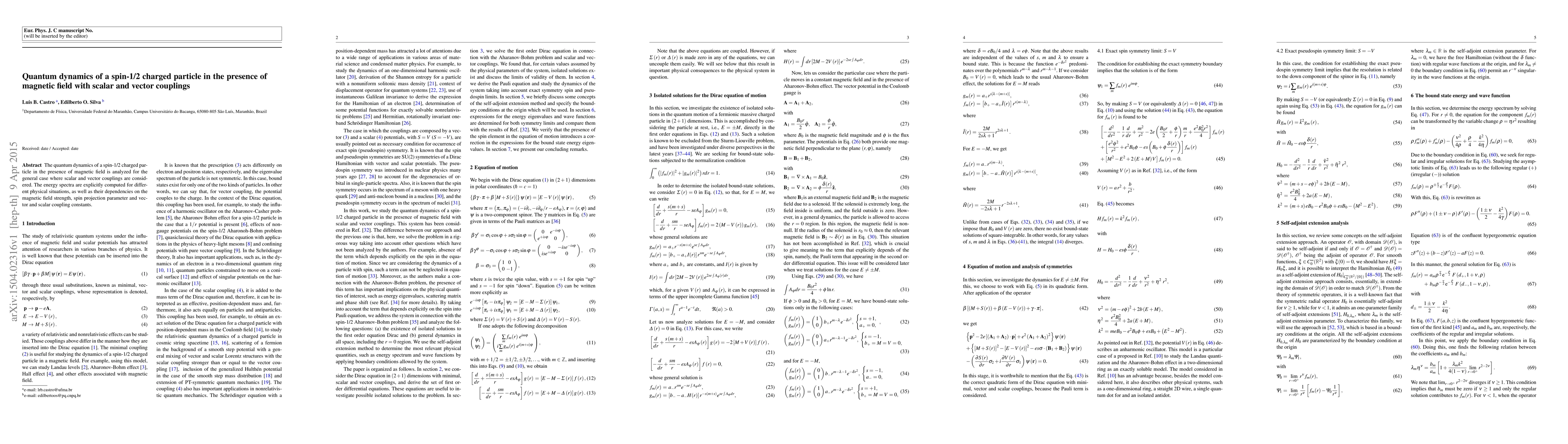This paper investigates the quantum dynamics of a spin-1/2 charged particle under a magnetic field with both scalar and vector couplings, computing the energy spectra and analyzing their dependence on magnetic field strength, spin projection, and coupling constants.