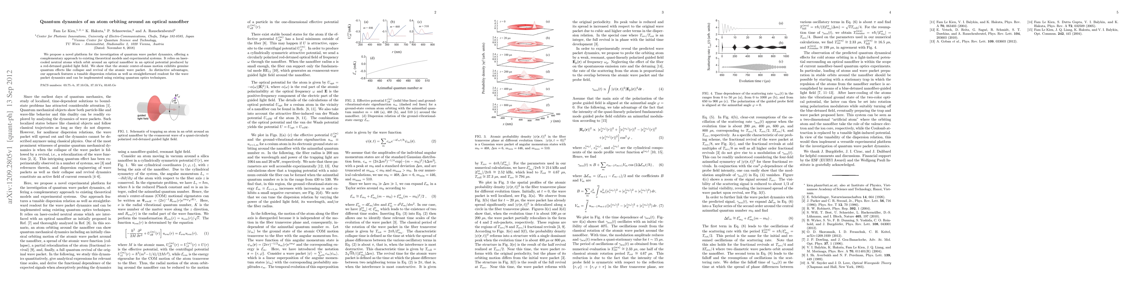 We propose a novel platform for the investigation of quantum wave packet dynamics, offering a complementary approach to existing theoretical models and experimental systems. It relies on laser-cooled neutral atoms which orbit around an optical nanofiber in an optical potential produced by a red-detuned guided light field. We show that the atomic center-of-mass motion exhibits genuine quantum effects like collapse and revival of the atomic wave packet. As distinctive advantages, our approach features a tunable dispersion relation as well as straightforward readout for the wave packet dynamics and can be implemented using existing quantum optics techniques.
