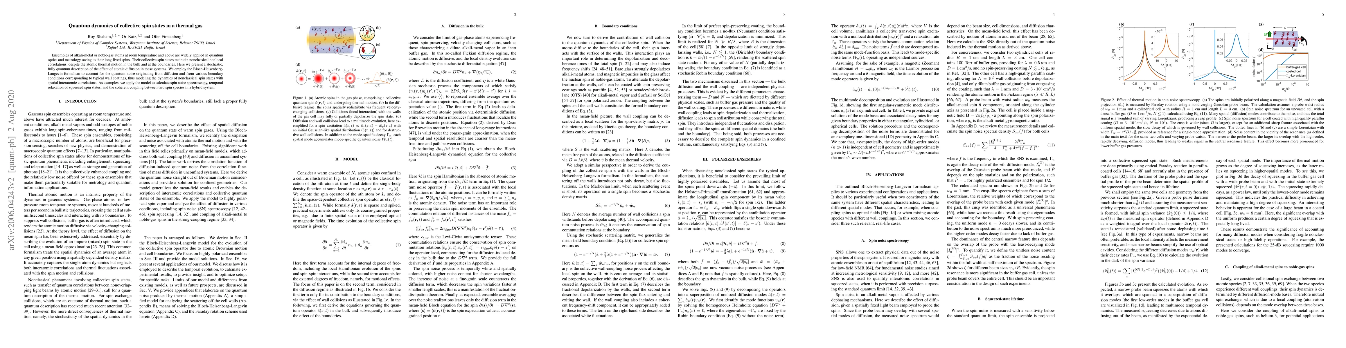 This paper presents a quantum-dynamical model for collective spin states in thermal gas ensembles, using the Bloch-Heisenberg-Langevin formalism to account for atomic diffusion and boundary effects. The model is applied to study spin noise spectroscopy, relaxation of squeezed spin states, and coherent coupling between different spin species.