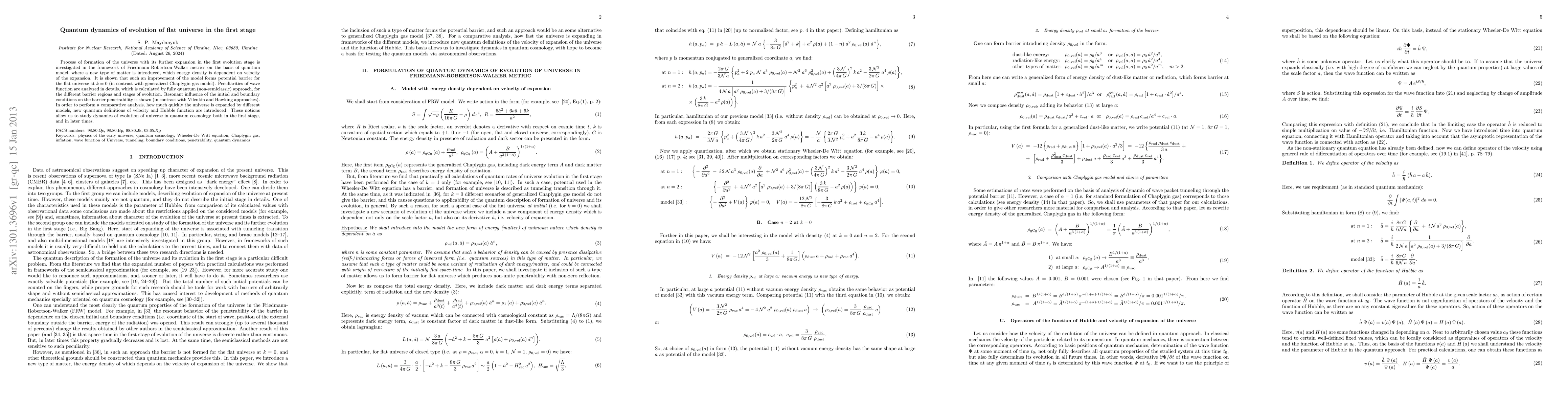 This paper investigates the quantum dynamics of a flat universe's early evolution using a Friedmann-Robertson-Walker metric with a new quantum matter model, showing it forms a potential barrier unlike the generalized Chaplygin gas model. It introduces quantum definitions of velocity and Hubble function to compare the expansion rates across different models.
