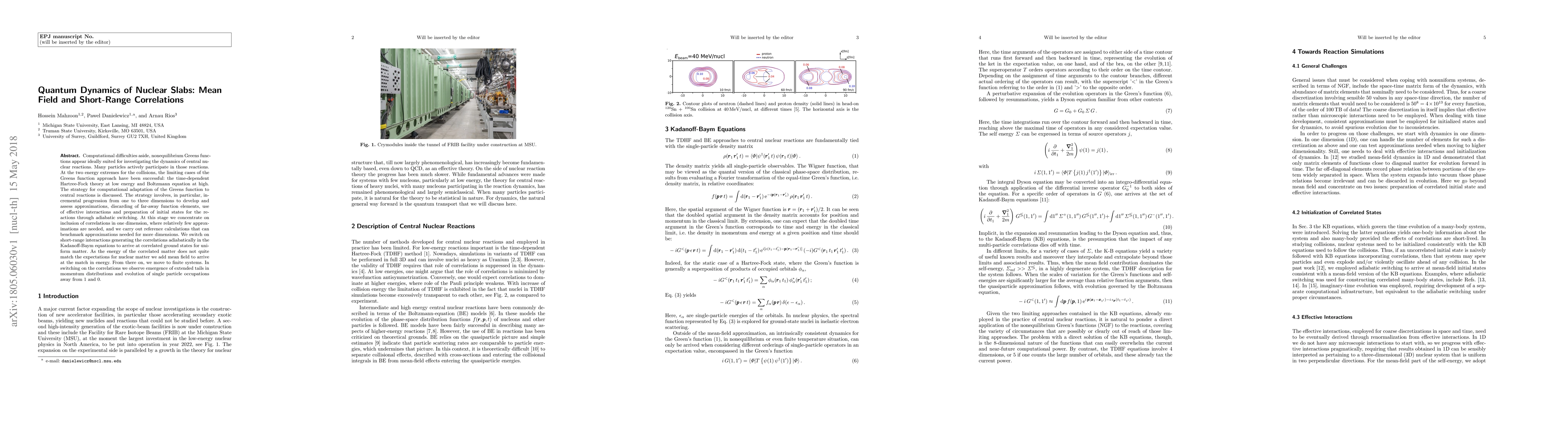 This paper explores the dynamics of nuclear reactions using nonequilibrium Green's functions, focusing on incorporating short-range correlations and mean field effects in one-dimensional nuclear slabs. It benchmarks approximations for higher dimensions and observes the emergence of extended momentum tails and non-binary single-particle occupations upon introducing correlations.
