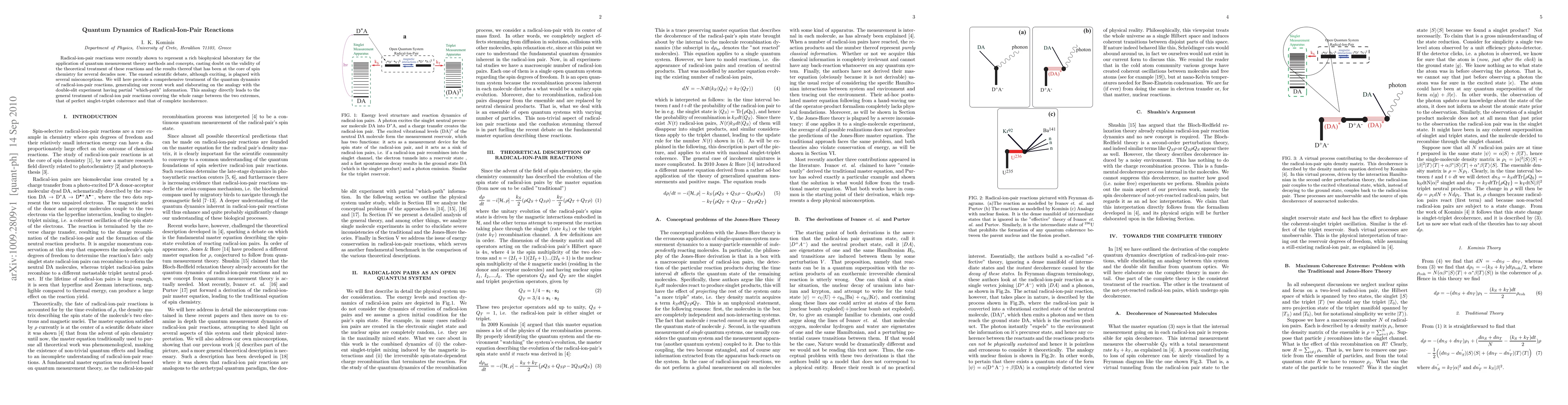 A general treatment of radical-ion pair reactions was developed, providing new insights into the quantum dynamics of these reactions.