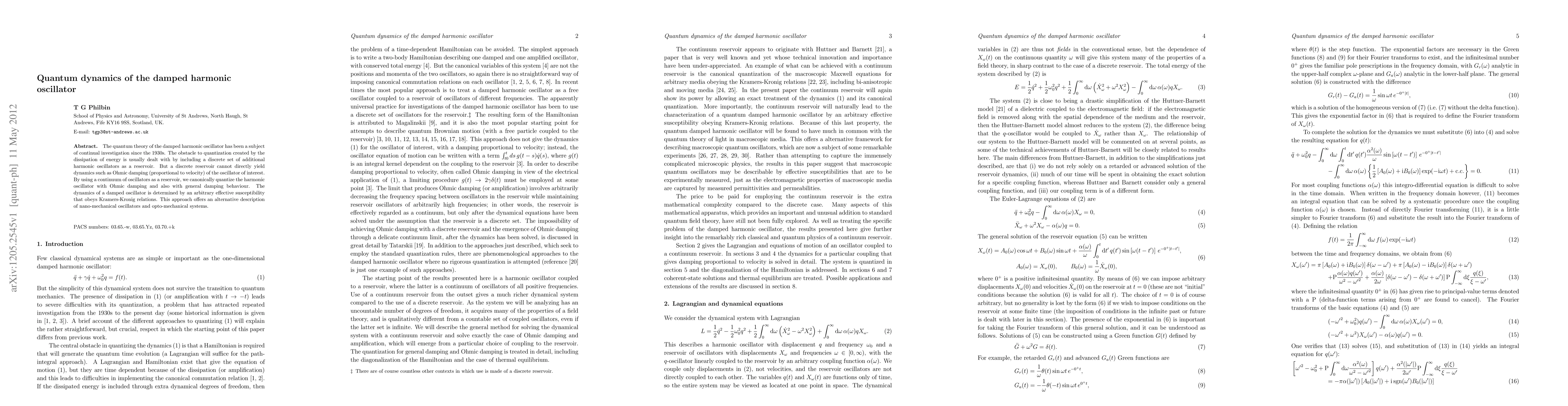 The quantum theory of the damped harmonic oscillator has been a subject of continual investigation since the 1930s. The obstacle to quantization created by the dissipation of energy is usually dealt with by including a discrete set of additional harmonic oscillators as a reservoir. But a discrete reservoir cannot directly yield dynamics such as Ohmic damping (proportional to velocity) of the oscillator of interest. By using a continuum of oscillators as a reservoir, we canonically quantize the harmonic oscillator with Ohmic damping and also with general damping behaviour. The dynamics of a damped oscillator is determined by an arbitrary effective susceptibility that obeys Kramers-Kronig relations. This approach offers an alternative description of nano-mechanical oscillators and opto-mechanical systems.