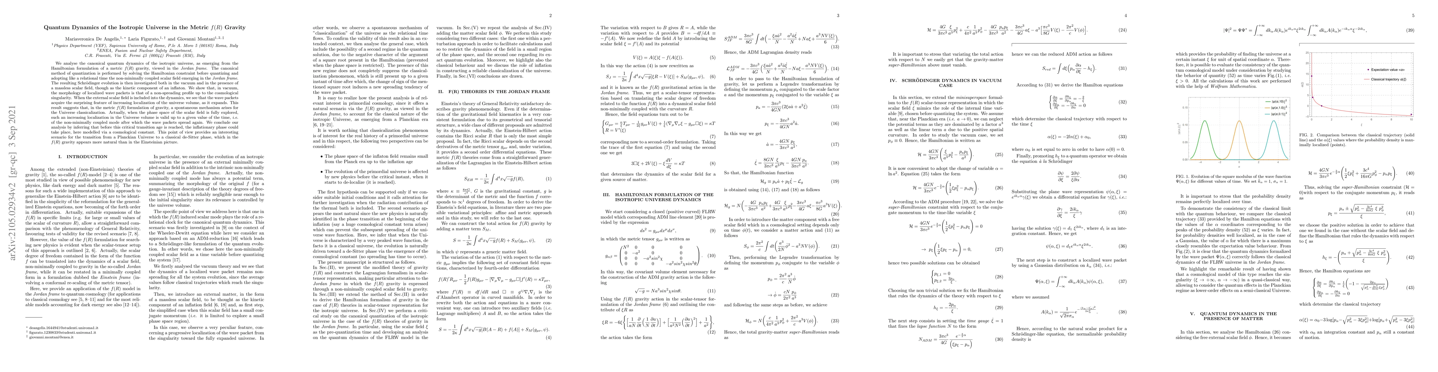 We analyse the canonical quantum dynamics of the isotropic universe, as emerging from the Hamiltonian formulation of a metric f(R) gravity, viewed in the Jordan frame. The canonical method of quantization is performed by solving the Hamiltonian constraint before quantizing and adopting like a relational time the non-minimally coupled scalar field emerging in the Jordan frame. The resulting Schr\"oedinger evolution is then investigated both in the vacuum and in the presence of a massless scalar field, though as the kinetic component of an inflaton. We show that, in vacuum, the morphology of localized wave packets is that of a non-spreading profile up to the cosmological singularity. When the external scalar field is included into the dynamics, we see that the wave packets acquire the surprising feature of increasing localization of the universe volume, as it expands. This result suggests that in the metric f(R) formulation of gravity, a spontaneous mechanism arises for the universe classicization. Actually, when the phase space of the scalar field is fully explored, such an increasing localization in the Universe volume is valid up to a given value of the time, i.e. of the non-minimally coupled mode after which the wave packets spread again. We conclude our analysis by inferring that before this critical transition age is reached, the inflationary phase could take place, here modelled via a cosmological constant. This point of view provides an interesting scenario for the transition from a Planckian Universe to a classical de-Sitter phase, which in the f(R) gravity appears more natural than in the Einsteinian picture.