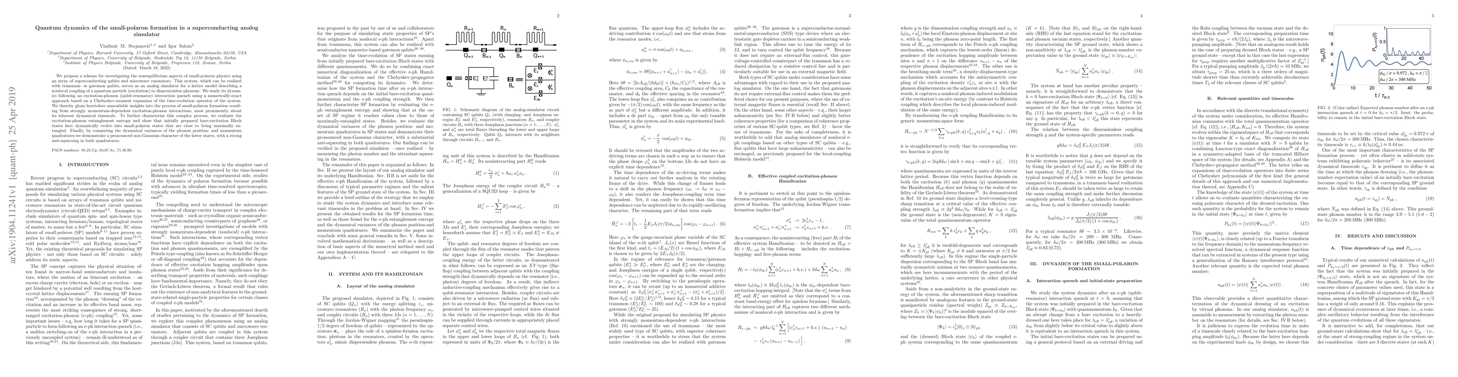 We propose a scheme for investigating the nonequilibrium aspects of small-polaron physics using an array of superconducting qubits and microwave resonators. This system, which can be realized with transmon or gatemon qubits, serves as an analog simulator for a lattice model describing a nonlocal coupling of a quantum particle (excitation) to dispersionless phonons. We study its dynamics following an excitation-phonon (qubit-resonator) interaction quench using a numerically exact approach based on a Chebyshev-moment expansion of the time-evolution operator of the system. We thereby glean heretofore unavailable insights into the process of the small-polaron formation resulting from strongly momentum-dependent excitation-phonon interactions, most prominently about its inherent dynamical timescale. To further characterize this complex process, we evaluate the excitation-phonon entanglement entropy and show that initially prepared bare-excitation Bloch states here dynamically evolve into small-polaron states that are close to being maximally entangled. Finally, by computing the dynamical variances of the phonon position and momentum quadratures, we demonstrate a pronounced non-Gaussian character of the latter states, with a strong antisqueezing in both quadratures.
