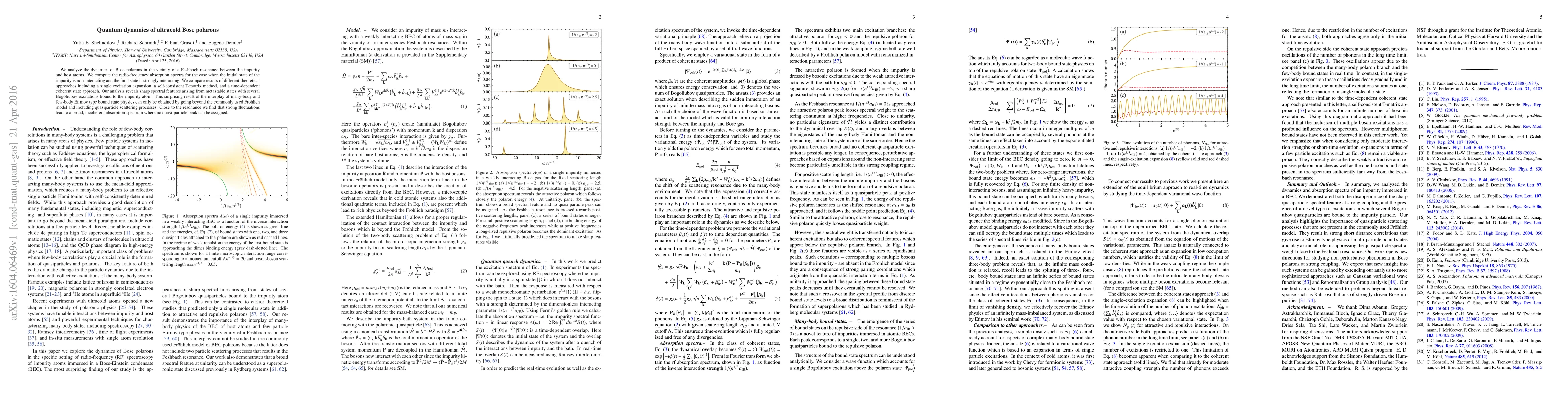We analyze the dynamics of Bose polarons in the vicinity of a Feshbach resonance between the impurity and host atoms. We compute the radio-frequency absorption spectra for the case when the initial state of the impurity is non-interacting and the final state is strongly interacting. We compare results of different theoretical approaches including a single excitation expansion, a self-consistent T-matrix method, and a time-dependent coherent state approach. Our analysis reveals sharp spectral features arising from metastable states with several Bogoliubov excitations bound to the impurity atom. This surprising result of the interplay of many-body and few-body Efimov type bound state physics can only be obtained by going beyond the commonly used Fr\"ohlich model and including quasiparticle scattering processes. Close to the resonance we find that strong fluctuations lead to a broad, incoherent absorption spectrum where no quasi-particle peak can be assigned.