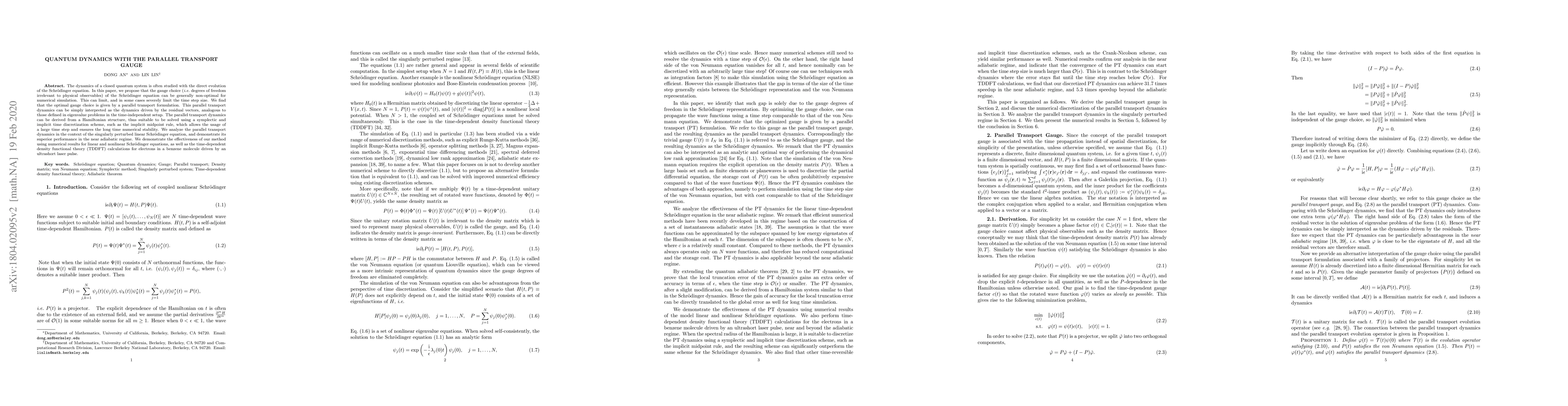 The dynamics of a closed quantum system is often studied with the direct evolution of the Schrodinger equation. In this paper, we propose that the gauge choice (i.e. degrees of freedom irrelevant to physical observables) of the Schrodinger equation can be generally non-optimal for numerical simulation. This can limit, and in some cases severely limit the time step size. We find that the optimal gauge choice is given by a parallel transport formulation. This parallel transport dynamics can be simply interpreted as the dynamics driven by the residual vectors, analogous to those defined in eigenvalue problems in the time-independent setup. The parallel transport dynamics can be derived from a Hamiltonian structure, thus suitable to be solved using a symplectic and implicit time discretization scheme, such as the implicit midpoint rule, which allows the usage of a large time step and ensures the long time numerical stability. We analyze the parallel transport dynamics in the context of the singularly perturbed linear Schrodinger equation, and demonstrate its superior performance in the near adiabatic regime. We demonstrate the effectiveness of our method using numerical results for linear and nonlinear Schrodinger equations, as well as the time-dependent density functional theory (TDDFT) calculations for electrons in a benzene molecule driven by an ultrashort laser pulse.