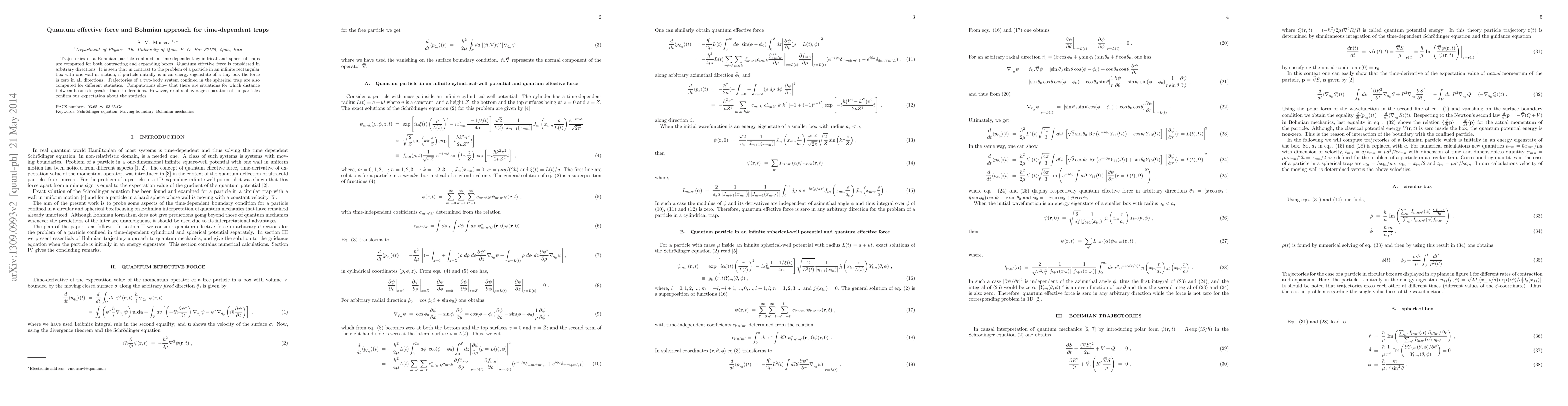 Research investigates how quantum effective force affects particle movement in time-dependent traps, finding that trajectories depend on initial energy state and statistics of the system.