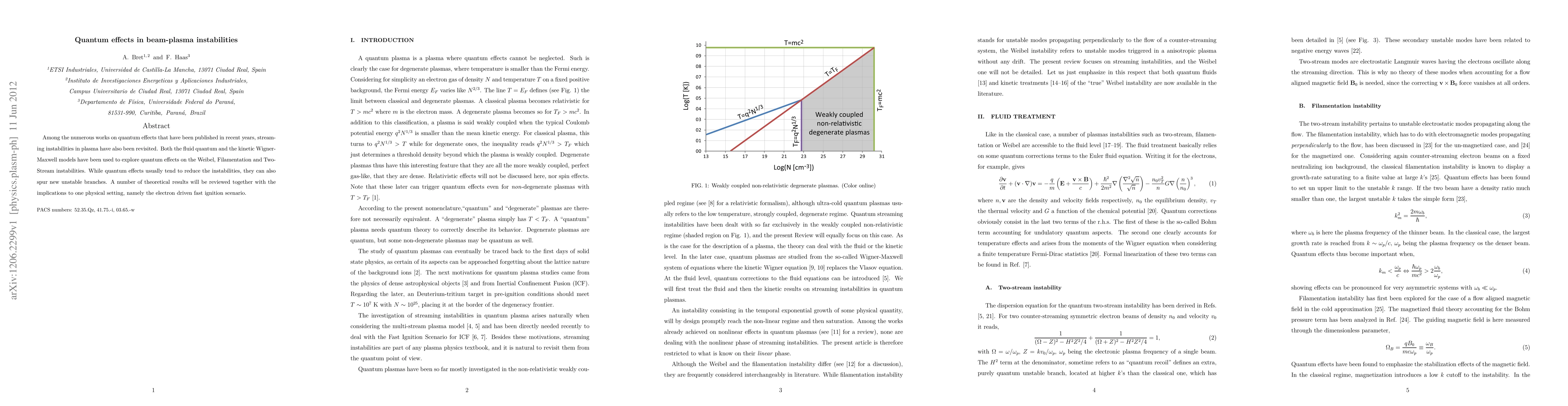 Among the numerous works on quantum effects that have been published in recent years, streaming instabilities in plasma have also been revisited. Both the fluid quantum and the kinetic Wigner-Maxwell models have been used to explore quantum effects on the Weibel, Filamentation and Two-Stream instabilities. While quantum effects usually tend to reduce the instabilities, they can also spur new unstable branches. A number of theoretical results will be reviewed together with the implications to one physical setting, namely the electron driven fast ignition scenario.