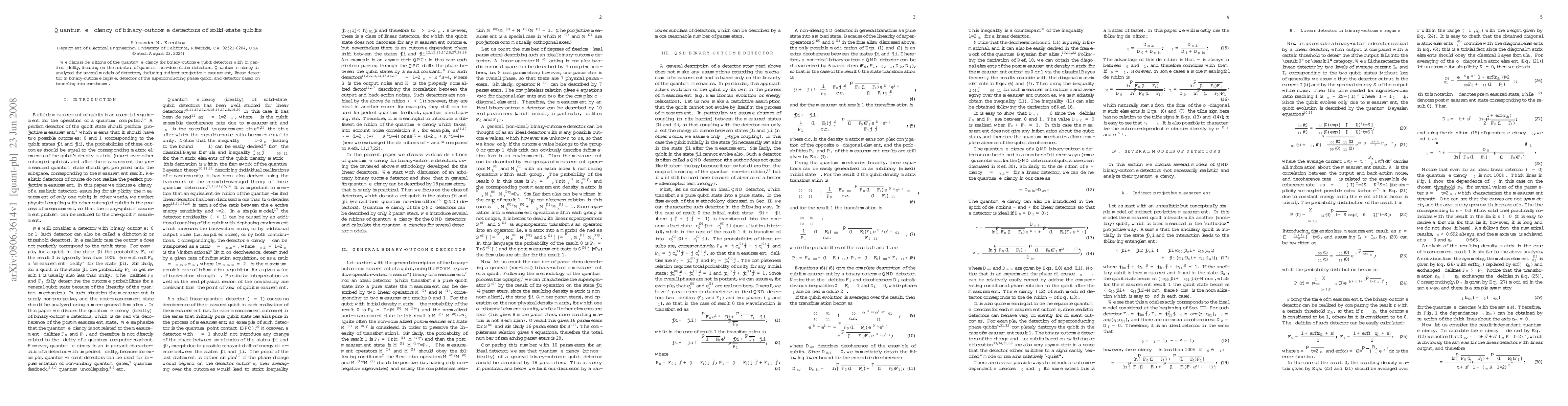 This paper explores the quantum efficiency of binary-outcome detectors for solid-state qubits, particularly focusing on quantum non-demolition detectors. It analyzes various detector models, including indirect projective measurement, linear detectors, superconducting phase qubits, and tunneling detectors.