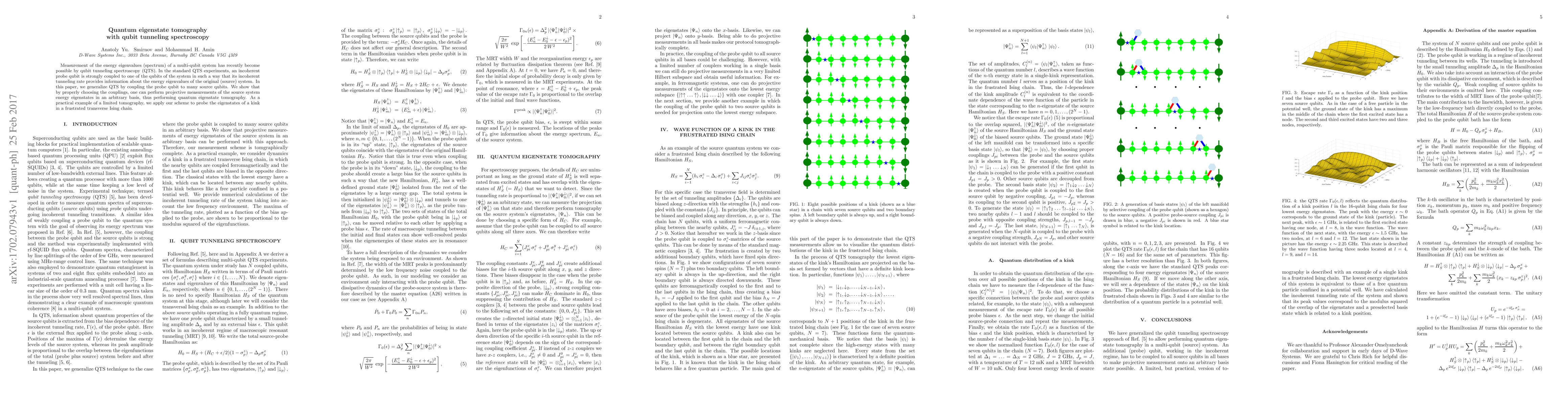 The paper introduces a method for quantum eigenstate tomography using generalized qubit tunneling spectroscopy, which involves coupling a probe qubit to multiple source qubits and performing projective measurements in arbitrary bases.